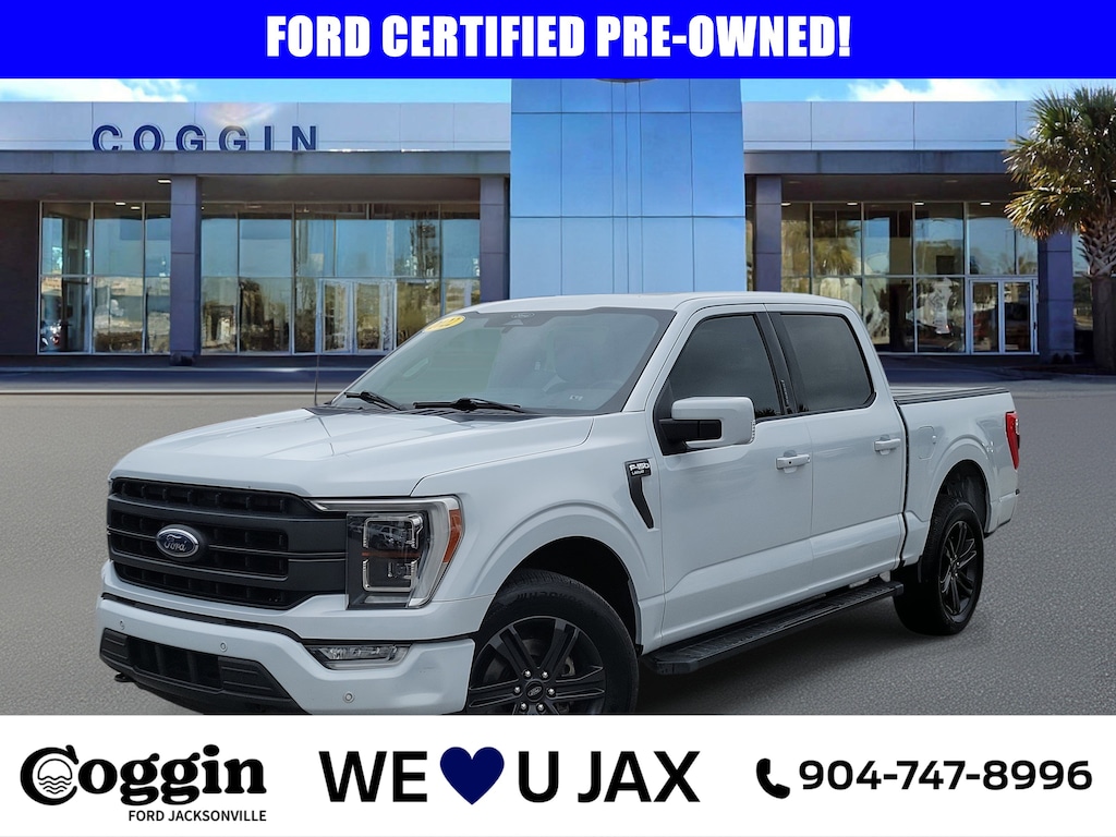 Priced below KBB Fair Purchase Price! Powerful LARIAT 4x4 SuperCrew with luxury comfort and serious capability in Space White Metallic. This F-150 fits the life of a buyer who wants premium refinement during the week and unstoppable capability on the weekends. With its 3.5L EcoBoost power, Max Trailer Tow Package, twin-panel moonroof, leather bucket seats, and cutting-edge tech, it gives you the confidence, comfort, and versatility Jacksonville drivers depend on every day. 3.5L V6 EcoBoost 10-speed automatic LARIAT 502A Leather bucket seats Twin-panel moonroof Max Trailer Tow Package with integrated brake controller 36-gallon extended-range tank 20 dark alloy wheels B&O Unleashed 18-speaker audio Ford Co-Pilot360 Assist 2.0 Connected built-in navigation Heated & ventilated front seats Wireless charging Bed Utility Package: tailgate step, LED box lighting, power tailgate, BoxLink Electronic-locking rear axle 275/60R20 all-terrain tires Zone lighting Power sliding rear window 12 SYNC 4 display & 12 productivity screen Backed by Coggin Ford Jacksonvilles commitment to transparent pricing, high-volume selection, and guest-first service, every used vehicle receives a thorough inspection to ensure long-term confidence. Local buyers appreciate our straightforward process, strong reputation, and dedication to helping you find the right truck with zero hassle. F-150 LARIAT 4x4, EcoBoost towing power, LARIAT luxury interior, used Ford trucks Jacksonville, pre-owned F-150 Space White Metallic, leather 4x4 pickup Jacksonville FL, used Ford dealership Jacksonville, best used trucks in Northeast Florida, F-150 Max Trailer Tow Package, twin-panel moonroof F-150. Serving Jacksonville, Saint Augustine, Northeast Florida, Daytona, Tampa, Southern Georgia, Kingsland, and Starke., 4WD, 2nd Row Heated Seats, Accent-Color Angular Step Bars, Bed Utility Package, Body-Color Front & Rear Bumpers, Box Side Decals, BoxLink, Chrome Single-Tip Exhaust, Class IV Trailer Hitch Receiver, Connected Built-In Navigation, Dark 2-Bar & 1 Minor Bar Style Grille, Equipment Group 502A High, Evasive Steering Assist, Extended Range 36 Gallon Fuel Tank, Ford Co-Pilot360 Assist 2.0 (DISC), Heated Steering Wheel, Integrated Trailer Brake Controller, Intelligent Adaptive Cruise Control w/Stop & Go, Intersection Assist, Lariat Sport Appearance Package, Leather-Trimmed Bucket Seats, LED Box Lighting, LED Projector w/Dynamic Bending Headlamps, Max Trailer Tow Package, Navigation system: Connected Navigation, Onboard 400W Outlet, Power Glass Sideview Mirr w/Chrome Skull Caps, Power Tailgate, Power Tilt/Telescoping Steering Column w/Memory, Pro Trailer Backup Assist, Radio: B&O Sound System by Bang & Olufsen, Rain-Sensing Wipers, Speed Sign Recognition, Tailgate Step w/Tailgate Work Surface, Trailer Tow Package, Twin Panel Moonroof, Universal Garage Door Opener, Wheels: 18 6-Spoke Gloss Black Wheel, Wireless Charging Pad.