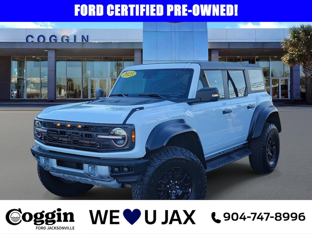 Priced below KBB Fair Purchase Price! 2023 Ford Bronco Raptor in Oxford White, loaded with the Raptor Series, Lux Package, and the power and engineering you expect from Fords top off-road performance SUV. This 5-passenger Advanced 4x4 model is built around the 3.0L EcoBoost V6 and 10-speed automatic, delivering exceptional torque, fast response, and the capability to handle everything from deep sand to rough backcountry terrain. The HOSS 4.0 suspension with FOX Live Valve dampers, front stabilizer bar disconnect, front and rear locking differentials, and massive 37-inch A/T tires give it true Raptor-level trail confidence. Inside, the leather-trimmed and suede seats, heated steering wheel, wireless charging pad, 12 touchscreen, 360-degree camera, and built-in navigation create a premium, modern driving experience. The carbon fiber interior package further elevates the cabin feel, while the molded-in-color hard top with sound-deadening headliner keeps the interior quieter on the highway. Key features include adaptive cruise control, AM/FM with 10 speakers, keyless entry keypad, 60/40 split rear seat, USB A/C ports front and rear, auxiliary switches with pre-wiring, and FordPass Connect with Wi-Fi capability. Raptor-exclusive exterior details include the HD modular front bumper with Rigid fog lamps, reinforced swing gate, full metal bash plates, rock rails with removable running boards, black high-gloss 17 wheels, and the signature Raptor grille. Safety and driver-assistance highlights include pre-collision assist with automatic emergency braking, AdvanceTrac with RSC, trailer sway control, child safety locks, tire pressure monitoring, and the full Safety Canopy airbag system. At Coggin Ford Jacksonville, every used vehicle receives a rigorous inspection, transparent market-based pricing, and the level of guest-focused service that keeps buyers coming from all over Northeast Florida. We prioritize speed, clarity, and trustmaking the buying process easier whether youre local or purchasing from out of state. This Bronco Raptor is ideal for shoppers searching for high-performance off-road capability in Jacksonville, Saint Augustine, Daytona, Northeast Florida, Tampa, Southern Georgia, Kingsland, and Starke. High-traffic search terms integrated throughout this listing include 2023 Bronco Raptor for sale Jacksonville, Bronco Raptor Oxford White, 3.0L EcoBoost V6 Raptor, HOSS 4.0 suspension, FOX Live Valve dampers, 37-inch tires SUV, Florida off-road SUV, and Bronco Raptor luxury interior. These terms help improve visibility and drive more qualified local clicks. With its aggressive stance, upgraded suspension, advanced 4x4 engineering, and premium interior, this 2023 Bronco Raptor delivers the ultimate blend of performance and comfortready for daily use or serious weekend exploration across Jacksonville and beyond..