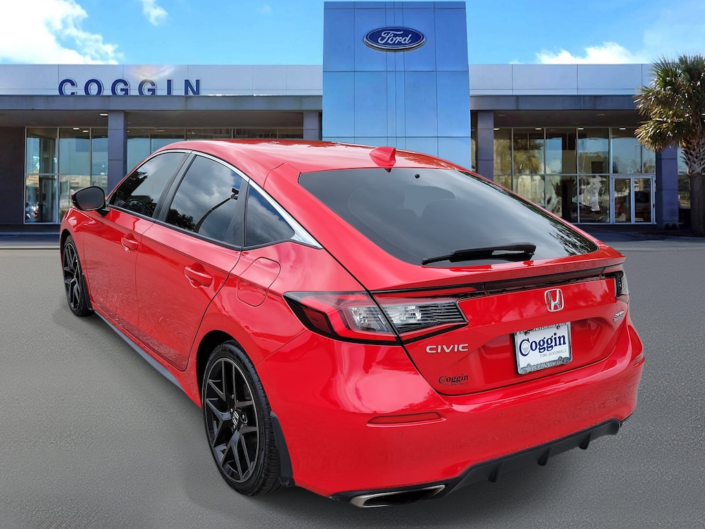 2022 Honda Civic Hatchback Sport Touring Turbocharged Performance & Premium Comfort This 2022 Honda Civic Hatchback Sport Touring blends sporty design, advanced technology, and everyday practicality into one exciting package. With 100,489 miles, its a well-cared-for hatchback that delivers the reliability Honda is known for, while adding turbocharged fun and upscale features. Whether youre commuting across Jacksonville, road-tripping to Daytona, or navigating the streets of Saint Augustine, this Civic is built to keep every drive engaging and efficient. Key Features: 1.5L Turbocharged 4-Cylinder DOHC VTEC Engine with CVT for power and efficiency Rallye Red exterior with Black leather-trimmed seating for a bold, premium look 18 Alloy Wheels with 235/40R18 AS Tires for confident handling Bose Premium Audio System for an immersive listening experience Heated Front Bucket Seats for comfort in every season Advanced Infotainment with Apple CarPlay and Android Auto integration Smart connectivity features including Bluetooth HandsFreeLink and HondaLink capability Safety-focused design with Rear Vision Camera, Honda Sensing driver-assist features, and Tire Pressure Monitoring System Continuously Variable Transmission for a smooth, fuel-efficient ride Partial Zero Emission Vehicle (PZEV) rated for eco-friendly driving Why Buy From Coggin Ford Jacksonville: Guest-Centric Approach with Your Experience as Our Priority Transparent, Upfront PricingNo Surprises, No Hassle Thorough Multi-Point Inspections on Every Vehicle We Sell Complimentary CarFax Report for Added Peace of Mind Trusted Local Service Backed by a Strong Reputation This Civic Hatchback Sport Touring is ideal for drivers seeking a reliable daily commuter that still feels sporty and refined. Its practical for Jacksonville traffic, comfortable for trips across Northeast Florida, and efficient enough for longer drives to Tampa, Kingsland, or southern Georgia. If youve been searching for a used car in Jacksonville, an affordable car near Daytona, or a Honda Civic for sale near me, this Sport Touring Hatchback is a standout choice. Dont waitvisit Coggin Ford Jacksonville today to test drive this Civic and see why its one of the most popular cars on the road., Black/Red Leather, Adaptive Cruise Control: Adaptive Cruise Control (ACC) with Low-Speed Follow, Cruise Control, Navigation system: Honda Satellite-Linked Navigation System.