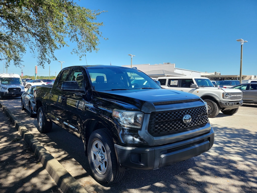 Powerful, Dependable, and Ready for Work or Play Jacksonvilles Reliable Full-Size Pickup This 2019 Toyota Tundra SR Double Cab 4.6L V8 brings legendary Toyota reliability and everyday strength to your driveway. Its Midnight Black Metallic exterior and bold stance project confidence, while the spacious Double Cab interior offers comfort for crew, family, or gear. Whether youre towing, hauling, or just cruising through Jacksonville, this Tundra delivers the capability and durability you can trust. Key Features 4.6L i-FORCE V8 engine with 310 hp and 327 lb-ft of torque 6-speed automatic transmission with sequential shift mode Towing receiver hitch with 4/7-pin connector and trailer-sway control Toyota Safety Sense P: Pre-Collision System with Pedestrian Detection, Dynamic Radar Cruise Control, Lane Departure Alert, Automatic High Beams Star Safety System and 8 total airbags Entune Audio with 6.1 touchscreen, Bluetooth, and Siri Eyes Free Backup camera and 4.2 multi-information display Power windows, door locks, and heated mirrors Easy lower and lift tailgate with 6.5 double-walled bed and rail caps Spray-on bedliner and all-weather floor liners 18 wheels with P255/70R18 tires Why Buy From Coggin Ford Jacksonville At Coggin Ford Jacksonville, we go beyond the sale were committed to delivering exceptional guest experiences and transparent, upfront pricing. Every pre-owned truck undergoes a detailed multi-point inspection and comes with a complimentary CarFax report, so you can shop with confidence. From our guest-centric approach to trusted local service, youll see why Jacksonville drivers keep choosing Coggin Ford. Used Toyota Tundra Jacksonville Pre-owned Tundra Double Cab Florida Used truck Northeast Florida Full-size pickup for sale Saint Augustine Reliable V8 truck Daytona Tundra for sale near Tampa Used 4x2 truck Southern Georgia Affordable work truck Kingsland and Starke, Black Cloth, ABS brakes, ADAPTIVE Cruise Control, Electronic Stability Control, Heated door mirrors, Illuminated entry, Low tire pressure warning, Remote keyless entry, Traction control.