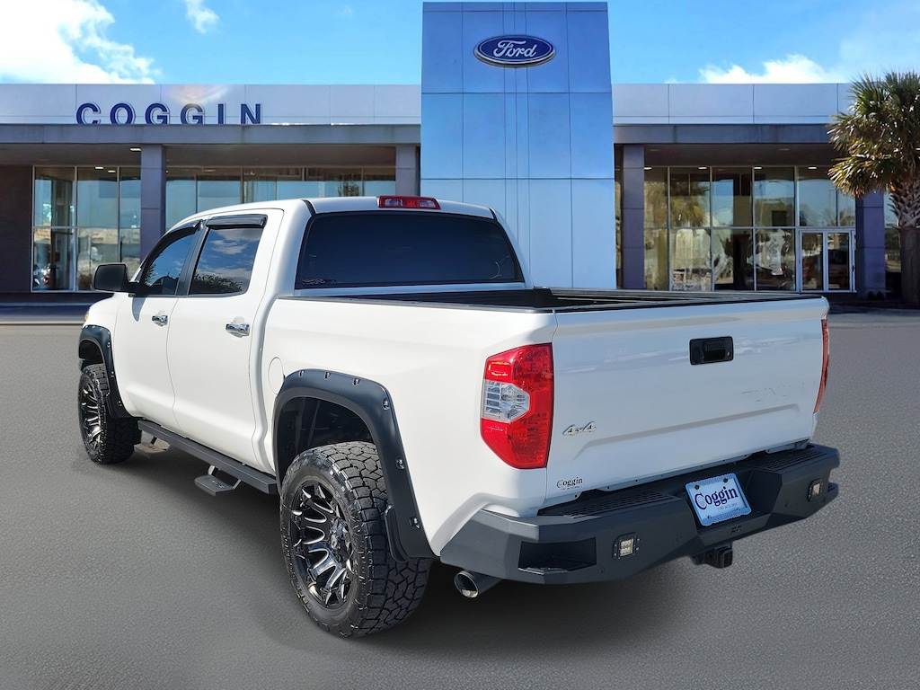 Priced below KBB Fair Purchase Price! 2020 TOYOTA TUNDRA PLATINUM CREWMAX 4X4 SUPER WHITE, 5.7L V8, LUXURY & POWER IN ONE TRUCK This 2020 Toyota Tundra Platinum CrewMax 4x4 in Super White blends full-size muscle with refined comfort. Built in Texas and powered by Toyotas legendary 5.7L i-FORCE V8, its made for Jacksonville drivers who want capability without compromiseperfect for towing the boat to St. Augustine, hauling gear around Northeast Florida, or cruising A1A in first-class comfort. 5.7L i-FORCE V8 DOHC 32V with 381 hp and 401 lb-ft of torque 6-speed automatic transmission with Sequential Shift mode 4WDemand part-time 4x4 with electronically controlled transfer case and A-TRAC Heavy-duty Tow Package with receiver hitch, 4.30 axle, engine/transmission coolers, HD battery & alternator, integrated 4/7-pin connector Automatic limited-slip differential and Trailer Sway Control 20-inch 6-spoke alloy wheels with all-season tires LED headlights, daytime running lights, and LED fog lamps Power tilt/slide moonroof with sunshade Premium JBL audio with 8 touchscreen, Dynamic Navigation, 12 speakers, subwoofer & amp Apple CarPlay, Android Auto, SiriusXM, Bluetooth, Wi-Fi Connect, and Safety Connect Perforated black leather-trimmed interior with heated and ventilated front bucket seats 12-way power driver seat with power thigh and lumbar support 6-way power passenger seat with lumbar adjustment 60/40 split fold-up rear seats for flexible cargo space Integrated backup camera and front/rear parking assist Toyota Safety Sense P with Pre-Collision System (Pedestrian Detection), Dynamic Radar Cruise Control, Lane Departure Alert, and Automatic High Beams Star Safety System: VSC, TRAC, ABS, EBD, Brake Assist, and Smart Stop Technology At Coggin Ford Jacksonville, were proud to offer full-size trucks that deliver premium craftsmanship and real-world strength. This Tundra Platinum 4x4 has the build quality, comfort, and reliability to handle anythingfrom long highway trips to heavy-duty workdayswhile keeping you in control and comfortable every mile. Our team is here to make your truck-buying experience as easy and transparent as possible. used 2020 Toyota Tundra Platinum Jacksonville FL, used Toyota Tundra 4x4 CrewMax for sale Northeast Florida, pre-owned Toyota Tundra Platinum Super White near Saint Augustine, used Toyota Tundra 5.7L V8 truck Daytona area, used full-size pickup near Tampa, used Toyota Tundra Platinum Southern Georgia, used Toyota Tundra Platinum near Kingsland GA, used Toyota Tundra Platinum near Starke FL, used luxury pickup truck Jacksonville FL, 4WD, Black Leather, ABS brakes, ADAPTIVE Cruise Control, Alloy Wheels, Compass, Electronic Stability Control, Front dual zone A/C, Heated & Ventilated Front Bucket Seats, Heated door mirrors, Heated Rear 2ND Row Seats, Illuminated entry, Low tire pressure warning, Navigation System, Remote keyless entry, Traction control.