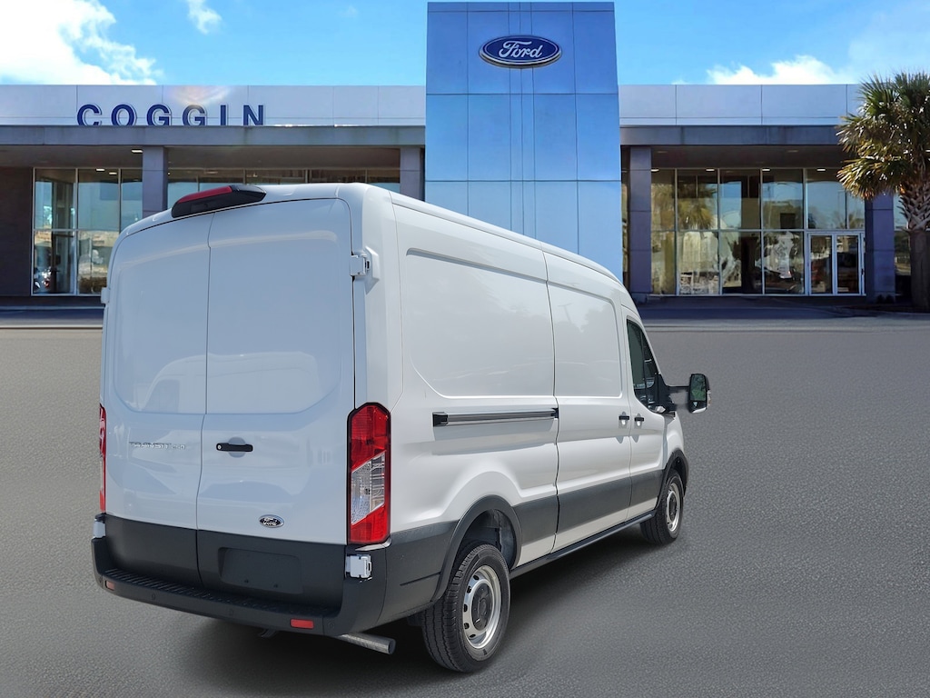 2025 Ford Transit 250 Medium Roof Cargo Van RWD Oxford White, 3.5L V6, 10-Speed Automatic Built for serious business, this Oxford White 2025 Ford Transit 250 Medium Roof Cargo Van delivers the capability, efficiency, and smart safety features Jacksonville professionals rely on every day. From delivery routes to mobile service operations, its engineered to work as hard as you domile after mile. Transit 250 Medium Roof Cargo Van, 148 wheelbase, rear-wheel drive 3.5L PFDI V6 gas engine paired with a 10-speed automatic transmission for durable, consistent power 3.73 non-limited-slip rear axle and 9,150-lb GVWR package for strong payload and towing performance 253 rear door opening for easy cargo loading in tight spaces E-85 Flex Fuel capable for added refueling flexibility and cost savings 2-way driver and passenger Palazzo Gray cloth seats with easy-clean durability Large center console and locking glove box for organized storage and convenience Two additional keys and keyless entry pad for fleet or multi-driver use LED interior lighting and rain-sensing wipers for all-weather productivity Standard safety suite includes Pre-Collision Assist with Automatic Emergency Braking, Lane-Keeping System, Forward Collision Warning, and Post-Collision Braking Rear View Camera with Trailer Hitch Assist for confident reversing and tight-spot maneuvering Selectable Drive Modes and Side-Wind Stabilization for smooth handling under load Full-size spare tire and steel body moldings for long-lasting utility 3-year/36,000-mile bumper-to-bumper and 5-year/60,000-mile powertrain warranties Why buy your Transit from Coggin Ford Jacksonville? Because we know what Florida businesses needdependable performance, flexible upfit options, and quick, professional service. Whether youre managing deliveries across Jacksonville or building your fleet for St. Augustine and beyond, this 2025 Transit 250 keeps your business on the move..