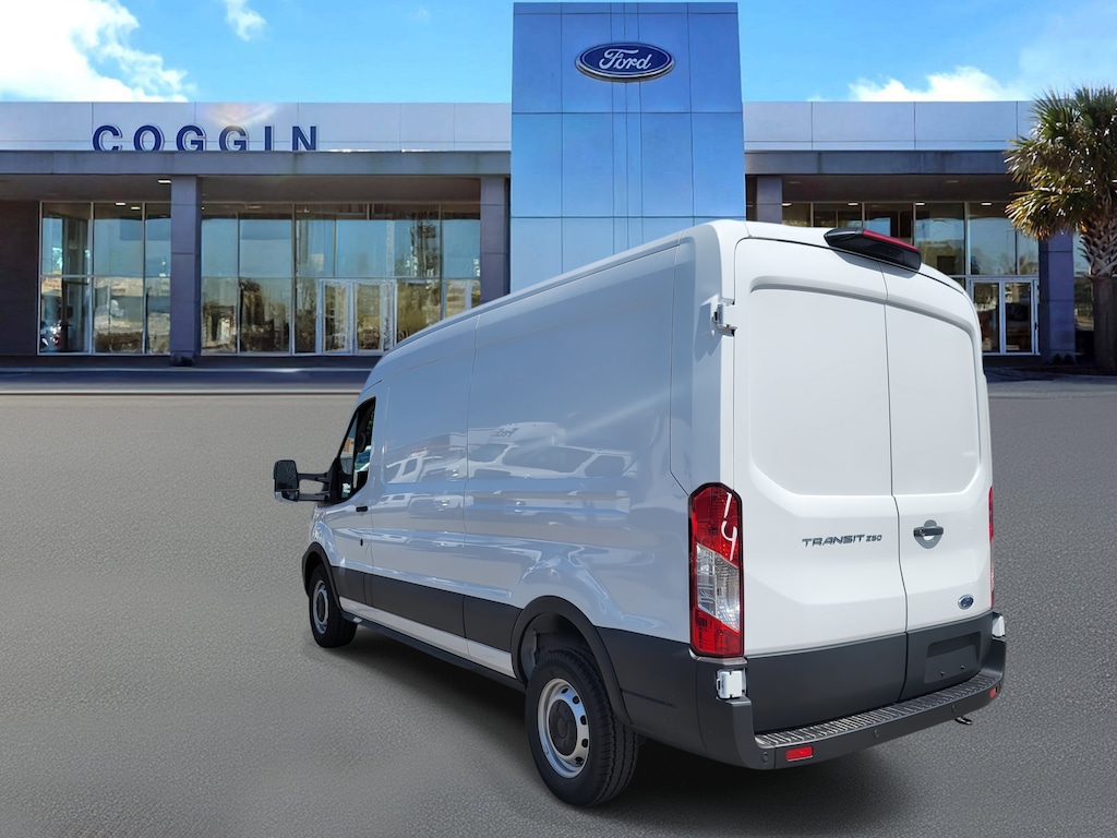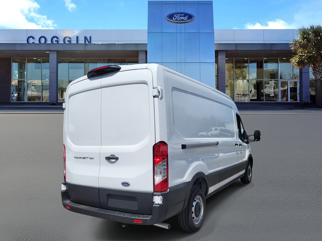 2025 Ford Transit 250 Medium Roof Cargo Van RWD Oxford White, 3.5L V6, 10-Speed Automatic Built for Jacksonville businesses that demand reliability and space, this 2025 Ford Transit 250 Medium Roof Cargo Van delivers the power, capacity, and safety tech to move your operation forward. Whether youre hauling equipment, making deliveries, or customizing it for mobile service, its engineered to keep your business productive and professional. Transit 250 Medium Roof Cargo Van, 148 wheelbase, rear-wheel drive 3.5L PFDI V6 gas engine with 10-speed automatic for strong, efficient performance 3.73 non-limited-slip axle and 9,150-lb GVWR package for heavy-duty capability Dual swing-out rear doors with 253 opening for easy cargo access Dark Palazzo Gray cloth interior with 2-way driver and passenger seats E-85 flex-fuel capable for lower operating costs and fuel flexibility Large center console and multiple 12V powerpoints for productivity on the go Keyless entry pad and two additional keys included for fleet or team use Rain-sensing wipers, auto high-beam headlamps, and LED interior lighting for convenience and visibility Advanced driver assistance: Lane-Keeping System, Pre-Collision Assist with Automatic Emergency Braking, Forward Collision Warning, Hill Start Assist, and Post-Collision Braking Rear View Camera with Trailer Hitch Assist and Side-Wind Stabilization for confident driving and parking Safety features include front, side, and Safety Canopy airbags plus SOS Post-Crash Alert System 3-year/36,000-mile bumper-to-bumper warranty and 5-year/60,000-mile powertrain coverage Why buy your commercial Transit from Coggin Ford Jacksonville? Because we understand how crucial uptime and reliability are to your business. From dedicated commercial sales support to fleet-ready service and transparent pricing, we help Jacksonville, St. Augustine, Daytona, and Northeast Florida businesses stay on the roadand ahead of the competition..