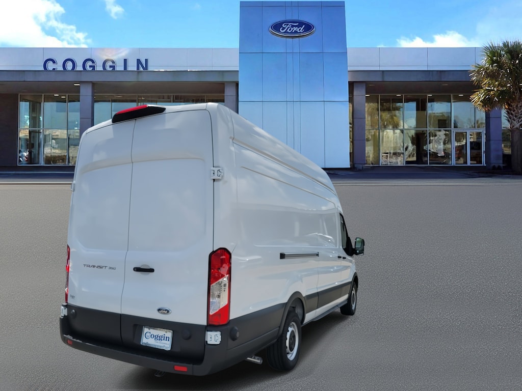 2025 Ford Transit 350 High Roof Cargo Van RWD Oxford White, 148 wheelbase, 3.5L EcoBoost V6 power and best-in-class versatility for Jacksonville businesses. Built to move your business forward, the 2025 Transit 350 HR combines proven strength with modern safety and smart technology. From local deliveries to long-haul routes across Northeast Florida, it delivers capability, comfort, and confidence mile after mile. High Roof Cargo Van with 148 Wheelbase maximized interior height and cargo space 3.5L EcoBoost V6 engine with 10-speed automatic transmission Rear-wheel drive, 3.73 axle ratio 9,500 lb GVWR package for heavy-duty performance Extended 31-gallon fuel tank for longer routes and fewer stops Reverse Sensing System + Backup Alarm for added safety during tight maneuvers Ford Co-Pilot360: Pre-Collision Assist with Automatic Emergency Braking, Lane-Keeping System, Post-Collision Braking, Forward Collision Warning Side-Wind Stabilization and Hill Start Assist for better control Rain-sensing wipers, auto high-beam headlamps Dark Palazzo Gray vinyl seating durable and easy to clean LED interior lighting, locking glove box, A-pillar assist handles, 12V front power point Full-size spare tire, black body moldings and bumpers, auxiliary fuel port Rear View Camera with Trailer Hitch Assist FordPass Connect 5G Wi-Fi hotspot capability Warranties: 3yr/36k bumper-to-bumper, 5yr/60k powertrain, 5yr/60k roadside assistance Why Jacksonvilles businesses choose Coggin Ford: trusted fleet experts, transparent commercial pricing, and fast service turnaround. From electricians to catering fleets, we help local companies stay productive and profitable. Serving Jacksonville, Saint Augustine, Northeast Florida, Daytona, Tampa, Southern Georgia, Kingsland, and Starke. Jacksonville Ford Transit 350 Cargo Van, High Roof 148 wheelbase, 3.5L EcoBoost V6, Ford commercial van Florida, Transit business fleet, rear-wheel drive cargo hauler, extended fuel tank, reverse sensing, backup alarm, lane-keeping assist, St. Augustine commercial vans, Daytona Ford fleet, Tampa work van, Kingsland GA Ford dealer, Starke FL commercial vehicles..
