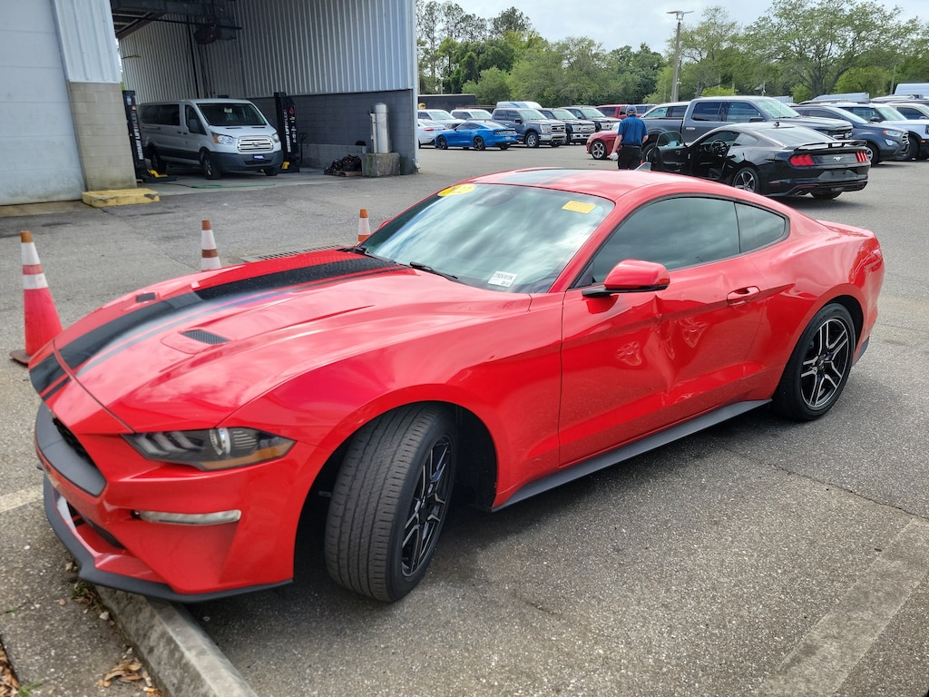 Boasting a striking Red exterior and an EcoBoost 2.3L I4 GTDi DOHC Turbocharged VCT engine, this Mustang EcoBoost Premium delivers an exhilarating driving experience. Paired with a 10-Speed Automatic transmission and Rear-Wheel Drive, this vehicle offers exceptional acceleration and handling, ensuring you'll always be in command of the road.