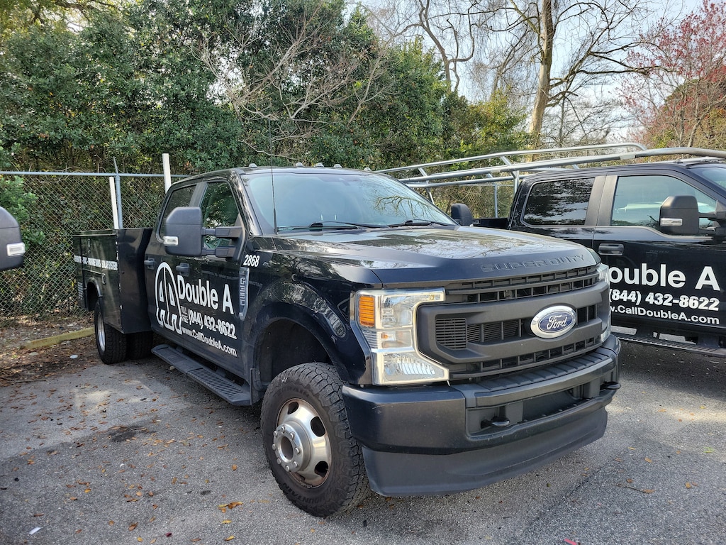 2022 Ford F-350 Super Duty XL 4x4 Crew Cab DRW finished in Agate Black with Medium Earth Gray cloth interior, powered by the proven 7.3L DEVCT NA PFI V8 engine paired to a 10-speed automatic transmission. Built on a 179-inch wheelbase and equipped with a full utility/service body, this truck is fully upfitted and ready to go straight to work across Jacksonville, Orange Park, St. Augustine, and throughout Northeast Florida. This is not just a chassis cab it already features a professionally installed full utility body, giving you secure, organized, and lockable side compartments for tools, equipment, and materials. The integrated storage system allows contractors, electricians, plumbers, HVAC technicians, municipal fleets, and service professionals to operate efficiently without additional upfitting costs or downtime. Its a turnkey commercial solution ready to generate revenue immediately. Under the hood, the 7.3L V8 gas engine delivers outstanding torque and long-term durability, making it ideal for heavy payloads and demanding job sites. Paired with a 4.30 limited-slip rear axle, dual rear wheels, and a 14,000 lb GVWR package, this F-350 is engineered for serious hauling stability and confidence under load. The extra heavy-service suspension further reinforces its work-ready capability. This truck is equipped with factory upfitter switches and an upfitter interface module, making it easy to control auxiliary lighting, compressors, inverters, or other service body accessories. The Trans Power Take-Off provision allows for hydraulic or PTO-driven equipment integration perfect for vocational builds that require cranes, lift systems, or specialty tools. Work-focused features continue with a Trailer Brake Controller, trailer tow wiring harness, electronic shift-on-the-fly 4x4, manual locking hubs, hill start assist, AdvanceTrac with Roll Stability Control, dual batteries, and a heavy-duty 397-amp alternator to support additional electrical demands. The utility lighting system and exterior backup alarm enhance job site safety and visibility. Inside the Crew Cab, youll find durable cloth 40/mini-console/40 seating, a 60/40 flip-up rear bench for additional interior storage flexibility, black vinyl flooring for easy cleanup, air conditioning, SYNC with AppLink, FordPass Connect, tilt and telescoping steering wheel, and practical work-oriented ergonomics designed for long days on the road. For businesses in Jacksonville and the surrounding North Florida markets looking for a fully equipped, heavy-duty service truck with a full utility body already installed, this 2022 Ford F-350 Super Duty XL 4x4 delivers strength, storage, electrical capability, and true job-site readiness from day one., 4WD, GVWR: 14,000 lb Payload Package, Order Code 640A.