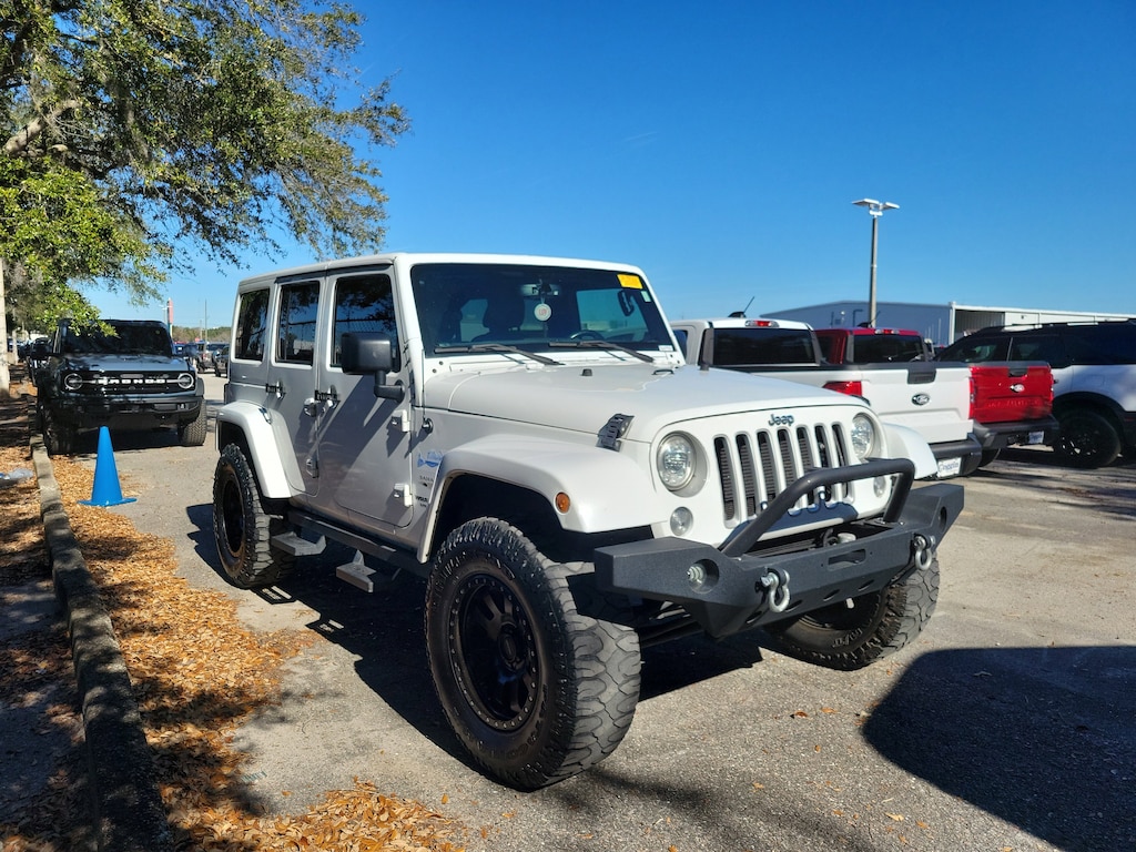 2017 Jeep Wrangler Unlimited Sahara 4x4 Iconic Open-Air Capability with Comfort and Style Built for drivers who want adventure without giving up everyday comfort, this 2017 Jeep Wrangler Unlimited Sahara 4x4 delivers legendary off-road capability with refined features youll appreciate on daily drives. Powered by the proven 3.6L V6 and equipped with Command-Trac 4WD, its ready for beach days, back roads, and everything in between, all while offering the space and versatility of the four-door Unlimited body style. 3.6L V6 engine paired with a 5-speed automatic transmission Command-Trac shift-on-the-fly part-time 4WD Sahara Package with body-color grille and premium exterior accents Bright White Clear Coat exterior with Black cloth interior 18-inch polished wheels with on/off-road tires LED headlamps and LED fog lamps Tubular side steps and Trail Rated badging Max Trailer Tow Package with Class II receiver hitch and 4-pin wiring 3.73 axle ratio for improved towing and low-speed traction Hill Descent Control and Trailer Sway Damping Uconnect with Bluetooth, SiriusXM, and steering-wheel audio controls Automatic climate control, power windows, power locks, and keyless entry At Coggin Ford Jacksonville, every used vehicle is carefully inspected and priced with transparency in mind. Our guest-focused approach means no pressure, no surprisesjust straightforward help finding the right vehicle for your lifestyle. 2017 Jeep Wrangler Unlimited Sahara for sale in Jacksonville, FL 4x4 SUV with V6 power, tow package, Bluetooth, LED lighting, and iconic Jeep capability. Serving drivers from Saint Augustine, Northeast Florida, Daytona, Tampa, Southern Georgia, Kingsland, and Starke., 3.73 Rear Axle Ratio, Body Color Appliques Front Bumper, Body Color Appliques Rear Bumper, Body Color/Accent Color Grille, Class II Receiver Hitch, Connectivity Group, Max Tow Package, Quick Order Package 24G, Remote USB Port, Tire Pressure Monitoring Display, Trailer Tow w/4-Pin Connector Wiring, Uconnect Voice Command w/Bluetooth, Vehicle Information Center.