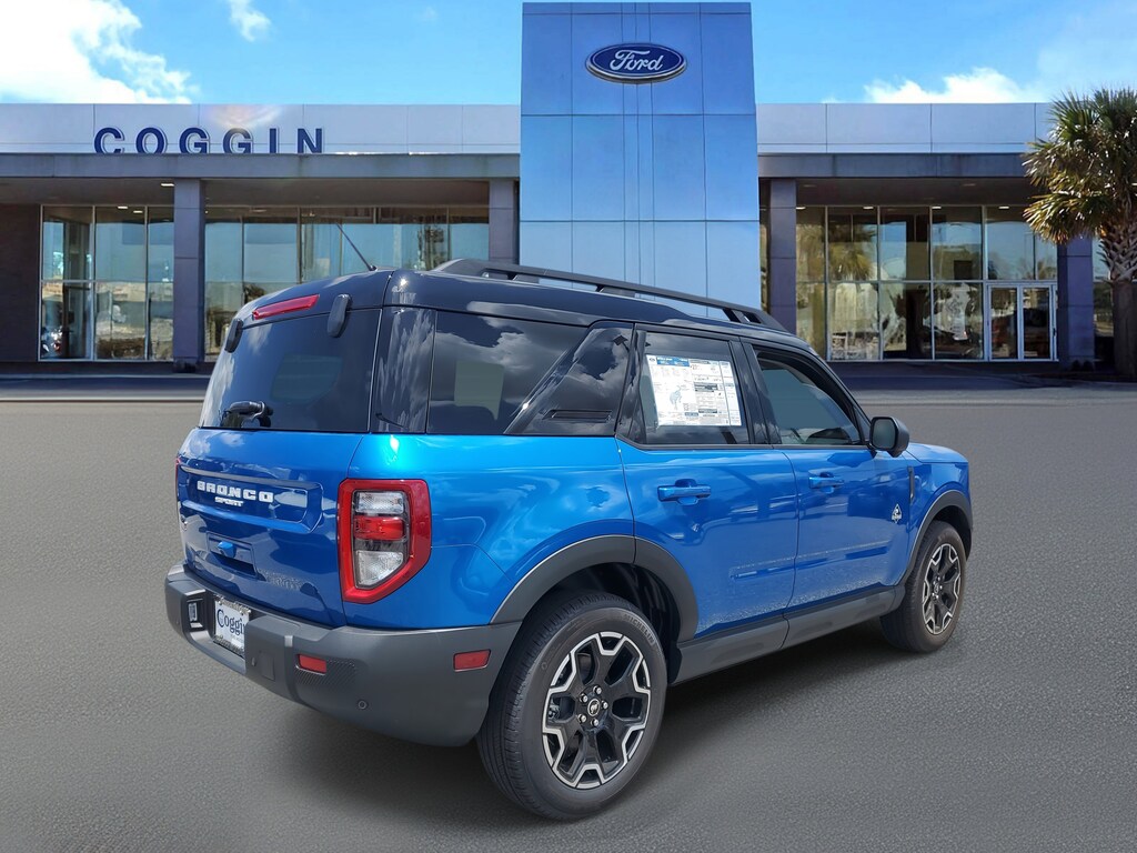 2025 Ford Bronco Sport Outer Banks 4x4 Velocity Blue Metallic Premium Comfort Meets Adventure This 2025 Ford Bronco Sport Outer Banks is designed for Jacksonville drivers who want efficiency, comfort, and capability in one smart SUV. Whether its tackling daily commutes in Southside, weekend escapes to St. Augustine, or outdoor adventures in Southern Georgia, this Bronco Sport delivers the perfect balance of refinement and ruggedness. Key Highlights 1.5L EcoBoost Engine with 8-Speed Automatic Transmission Intelligent 4x4 with Terrain Management System go anywhere with confidence 18 Black Aluminum Wheels with 225/60 R18 All-Season Tires 8-inch Touchscreen with SYNC 3, Apple CarPlay & Android Auto Premium Ebony Roast Interior with Power Driver & Passenger Seats Ford Co-Pilot360 safety suite with Blind Spot Monitoring & Lane-Keeping Assist Rain-Sensing Wipers, LED Fog Lamps & Roof-Rack Side Rails for added versatility Fuel-Efficient: 25 City / 30 Hwy MPG HD Radio & Smart-Charging USB Ports Why Buy from Coggin Ford Jacksonville At Coggin Ford Jacksonville, were proud to serve drivers across Jacksonville, St. Augustine, Ponte Vedra, Green Cove Springs, Daytona, and Southern Georgia with an unmatched car-buying experience: Guest-Centric Service Transparent, Upfront Pricing Trusted Local Team Our Promise: We Love You Jax If youre looking for a new Ford Bronco Sport in Jacksonville FL, this 2025 Outer Banks 4x4 is the perfect fit for active lifestyles. Stop by Coggin Ford Jacksonville today and take it for a test drive..