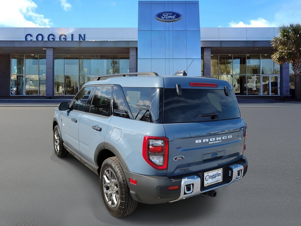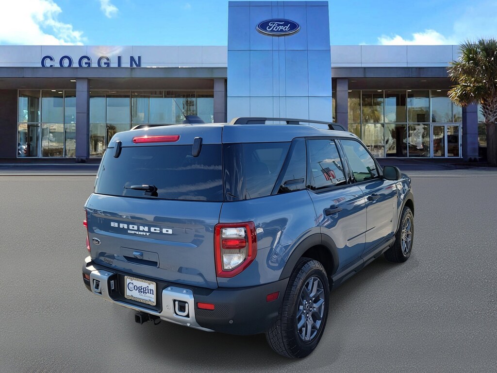 Adventure-ready and efficient, this 2025 Ford Bronco Sport Big Bend 4 4 in Azure Gray Metallic Tri-Coat combines confident performance with rugged off-road style. Equipped with the Black Diamond Off-Road Package, this SUV is engineered for those who want everyday comfort and weekend capability in one bold package. The 1.5L EcoBoost engine and 8-speed automatic transmission deliver smooth power and excellent efficiency, while the HOSS 1.0 Off-Road Suspension and Terrain Management System with 5 G.O.A.T. Modes ensure confident handling on any surface. Inside, the Bronco Sport blends practicality and comfort with a digital cluster, 13.2 SYNC 4 touchscreen, and smart cargo solutions. 1.5L EcoBoost Engine with 8-Speed Automatic Transmission 4 4 with Terrain Management System 5 G.O.A.T. Modes Black Diamond Off-Road Package HOSS 1.0 Suspension, All-Terrain Tires, Rubberized Seat Backs, Cargo Mat, and Cargo Management System Ford Co-Pilot360 Assist+ with Adaptive Cruise Control and Lane Centering SYNC 4 with Enhanced Voice Recognition and 13.2 Touchscreen FordPass Connect with 5G Wi-Fi Hotspot Capability LED Headlamps and Taillamps with Auto High-Beams Heated Power Mirrors and Rear Liftgate with Liftglass 60/40 Split-Fold Rear Seat and Illuminated Entry System Perimeter Alarm, Tire Pressure Monitoring System, and Rear View Camera Why Buy From Coggin Ford Jacksonville: transparent pricing, thorough multi-point inspections, complimentary CarFax reports, easy financing, and a guest-first experience backed by local trust. 2025 Ford Bronco Sport Big Bend 4 4, Azure Gray Metallic Tri-Coat, 1.5L EcoBoost, 8-Speed Auto, Black Diamond Off-Road Package, Co-Pilot360 Assist+, SYNC 4 13.2 Screen, Terrain Management System, HOSS 1.0 Suspension, All-Terrain SUV, Trail-Ready Compact Utility Vehicle.