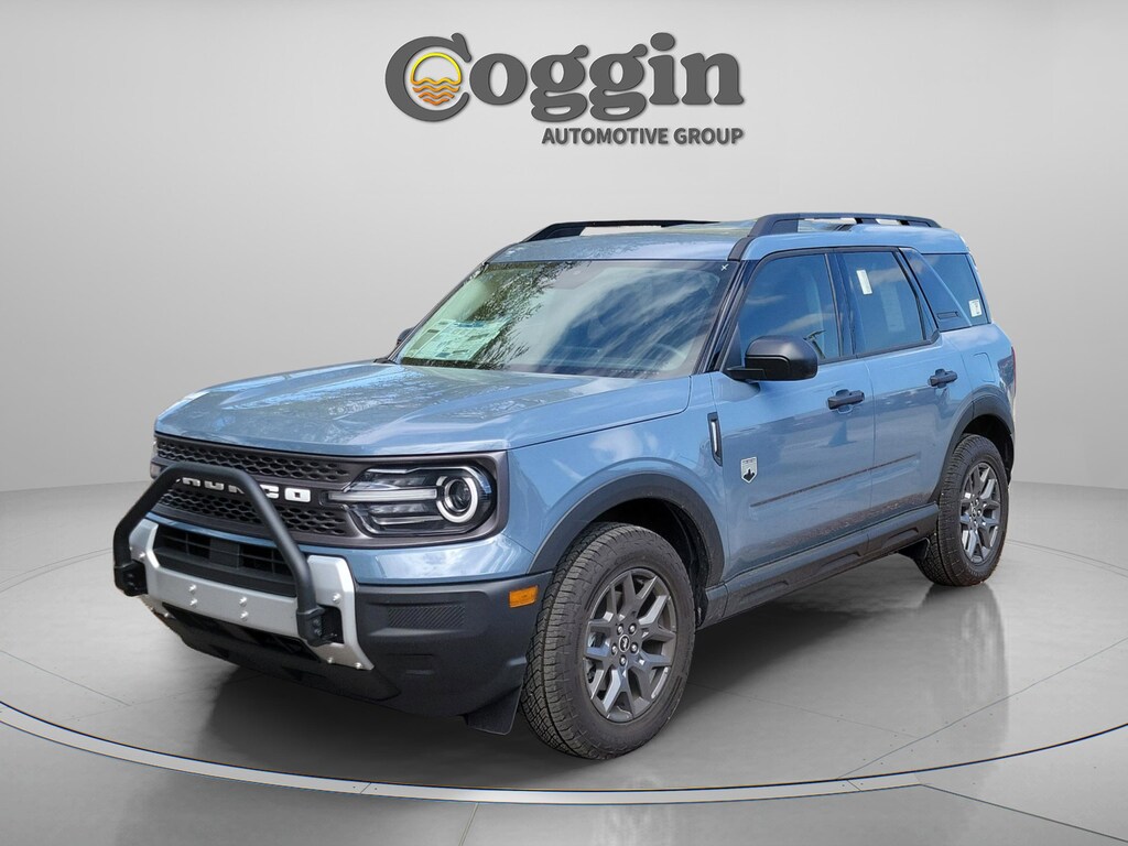 Adventure meets comfort in this 2025 Ford Bronco Sport Big Bend 4 4 in Azure Gray Metallic Tri-Coatfeaturing the Black Diamond Off-Road and Convenience Packages for the perfect balance of rugged capability and refined practicality. This SUV is built for drivers who want a confident off-road companion that feels just as comfortable on the highway. Powered by a 1.5L EcoBoost engine and 8-speed automatic transmission, the Bronco Sport delivers smooth efficiency and impressive versatility. The HOSS 1.0 Off-Road Suspension, all-terrain tires, and 5 G.O.A.T. Modes make it ready for sand, snow, or trails, while premium upgrades like the Power Moonroof, SYNC 4, and smart storage elevate everyday convenience. 1.5L EcoBoost Engine with 8-Speed Automatic Transmission 4 4 with Terrain Management System 5 G.O.A.T. Modes Black Diamond Off-Road Package HOSS 1.0 Off-Road Suspension, Skid Plates, All-Terrain Tires, Rubberized Seat Backs, and Cargo Management System Convenience Package Power 8-Way Driver Seat, Heated Front Seats, Wireless Charging Pad, Premium Wrapped Steering Wheel Power Moonroof with Manual Sunshade Ford Co-Pilot360 Assist+ Adaptive Cruise Control, Lane Centering, Evasive Steering Assist SYNC 4 with Enhanced Voice Recognition and 13.2 Touchscreen FordPass Connect with 5G Wi-Fi Hotspot Capability LED Headlamps and Taillamps with Auto High-Beams Adjustable Flood Liftgate Lighting and Roof Rack Side Rails Rear View Camera, Perimeter Alarm, and Smart-Charging USB Ports Why Buy From Coggin Ford Jacksonville: transparent pricing, multi-point inspections, complimentary CarFax reports, easy financing, and a guest-first experience that makes every purchase smooth and trustworthy. 2025 Ford Bronco Sport Big Bend 4 4, Azure Gray Metallic Tri-Coat, 1.5L EcoBoost, 8-Speed Auto, Black Diamond Off-Road Package, Convenience Package, Co-Pilot360 Assist+, SYNC 4 13.2 Screen, Power Moonroof, HOSS 1.0 Suspension, All-Terrain SUV, Trail-Ready Compact Utility Vehicle.