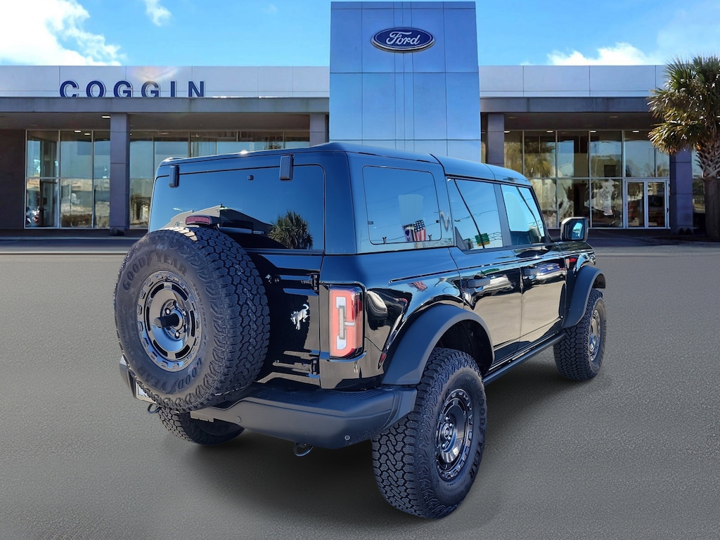 2025 Ford Bronco Badlands 4-Door 4x4 Built for Jacksonvilles Wild Side The legendary Bronco is back and bolder than ever. This factory-fresh 2025 Ford Bronco Badlands 4-Door 4x4 in Shadow Black delivers extreme off-road performance without sacrificing modern comfort. Designed for those who live for adventure, its equally at home tackling Floridas trails as it is cruising through Jacksonville streets. With the Sasquatch Package, advanced 4x4 hardware, and luxury-inspired features, this Bronco ensures that every journeywhether to Daytonas beaches or the rugged roads of Southern Georgiais unforgettable. Key Features Youll Love 2.7L EcoBoost V6 engine paired with a 10-speed automatic transmission for robust power windowsticker (4) Sasquatch Package with 35 mud-terrain tires, front & rear locking differentials, 4.7 rear axle, and 17 dark carbon gray wheels windowsticker (4) Badlands suspension with front stabilizer bar disconnect for maximum articulation windowsticker (4) Black-painted hard top with sound-deadening headliner and storage bag for removable panels windowsticker (4) Lux Package with 12-speaker premium audio, adaptive cruise control, 360-degree camera, and dual-zone electronic climate control windowsticker (4) Advanced 4x4 system with G.O.A.T. Modes (Goes Over Any Terrain) for unmatched versatility windowsticker (4) Rock rails, full-vehicle steel bash plates, powder-coated steel bumpers, and tow hooks for rugged protection windowsticker (4) Interior designed for both function and style: leather-trimmed/vinyl seats, MOLLE strap system, digital instrument cluster, and auxiliary switches windowsticker (4) SYNC 4 with 12 touchscreen, FordPass Connect, and wireless Apple CarPlay/Android Auto for seamless tech integration windowsticker (4) Comprehensive factory warranty: 3yr/36k bumper-to-bumper, 5yr/60k powertrain, 5yr/60k roadside assistance windowsticker (4) Why Buy Your New Ford from Coggin Ford Jacksonville At Coggin Ford Jacksonville, we understand that buying a Bronco isnt just a purchaseits a lifestyle. Thats why adventurers from Jacksonville, St. Augustine, Kingsland, and Tampa choose us over Bozard Ford, Yeomans Ford, and Duval Ford. Heres what sets us apart: Guest-Centric Approach built around your needs Transparent, Upfront Pricing with no hidden add-ons Exclusive access to brand-new Ford inventory and factory ordering Complimentary new vehicle orientation to ensure you get the most from your Bronco Badlands Trusted local warranty and service support for all of Northeast Florida and Southern Georgia.