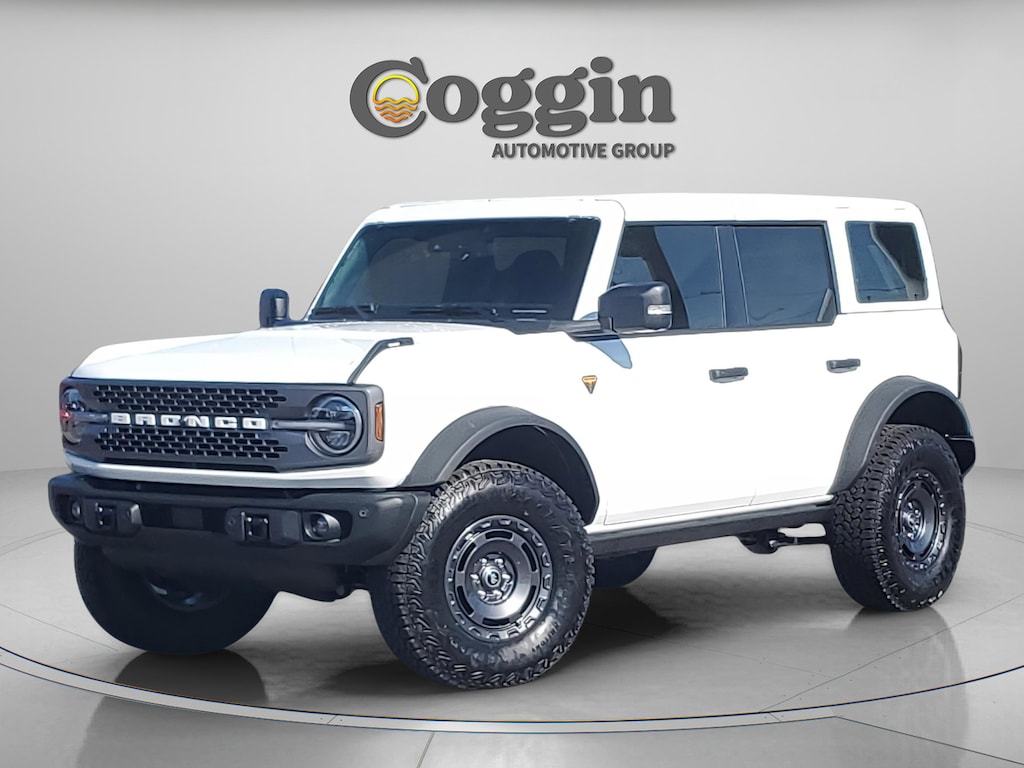 2025 Ford Bronco Badlands 4-Door 4x4 Oxford White The Ultimate Off-Road SUV The 2025 Ford Bronco Badlands 4-Door 4x4 in Oxford White is engineered for adventure, equipped with the 2.7L EcoBoost V6 engine and 10-speed automatic transmission. Built for drivers who demand extreme off-road capability without sacrificing comfort, this Bronco comes loaded with upgrades that make it trail-ready from day one. Key Highlights Oxford White Exterior with 17 Dark Carbon Gray Painted Aluminum Wheels 2.7L EcoBoost V6 Engine 315 HP and serious torque for rugged performance Sasquatch Package 17 beadlock-capable wheels, 35 LT315 all-terrain tires, electronic-locking front & rear axles, high-clearance suspension, and advanced off-road gearing Rock Rails & Sound Deadening Headliner added toughness and comfort Hard Top (Body Color Painted) with Storage Bag removable for open-air driving Lux Package 12 LCD touchscreen with SYNC 4, 360-degree camera, adaptive cruise control, premium 12-speaker audio, and wireless charging Remote Start System for added convenience Ford Co-Pilot360 Safety Features Pre-Collision Assist with AEB, Rear View Camera, Lane-Keeping Assist, AdvanceTrac with RSC stability control Fuel Economy 18 MPG combined (17 city / 18 highway) impressive for an SUV with this level of power and off-road capability Why Buy from Coggin Ford Jacksonville At Coggin Ford Jacksonville, we proudly serve Jacksonville, St. Augustine, Daytona, St. Johns, Ponte Vedra, Yulee, Green Cove Springs, and Southern Georgia. Backed by the We Love You Jax Promise your assurance of transparency, care, and customer satisfaction Large selection of new Bronco & Bronco Sport SUVs Expert team ready to match you with the perfect Bronco for your lifestyle The 2025 Ford Bronco Badlands 4-Door 4x4 in Oxford White is built for drivers who want to go anywhere, conquer anything, and look good doing it. Test drive yours today at Coggin Ford Jacksonville..