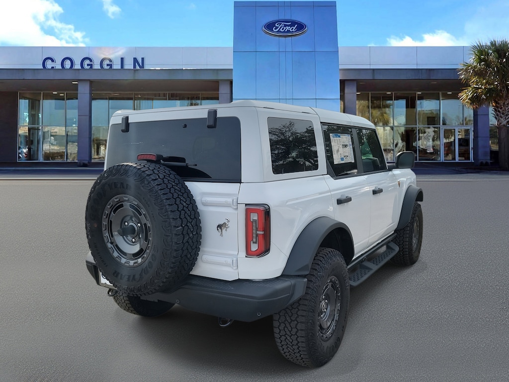 2025 Ford Bronco Badlands 4-Door 4x4 Oxford White, Factory-Built for Extreme Adventure The 2025 Ford Bronco Badlands 4-Door 4x4 in Oxford White is here at Coggin Ford Jacksonville, purpose-built for thrill-seekers who demand capability, style, and modern convenience. With the Sasquatch Package, advanced off-road hardware, and luxury-inspired upgrades, this Bronco is ready to tackle Floridas sandy trails, mud, or open highway with equal confidence. Whether youre cruising Jacksonville streets, exploring St. Augustine, or venturing into Southern Georgia, this Bronco delivers an unforgettable ride. Key Features Youll Love 2.7L EcoBoost V6 engine with 10-speed automatic transmission for commanding performance windowsticker (5) Sasquatch Package with 35 mud-terrain tires, 17 dark carbon gray alloy wheels, front & rear locking differentials, and 4.7 rear axle ratio windowsticker (5) Badlands suspension with front stabilizer bar disconnect for maximum articulation windowsticker (5) Body-color hard top with sound-deadening headliner plus removable front/door panels with storage bag windowsticker (5) Lux Package with 12-speaker premium audio, adaptive cruise control, 360-degree camera, and dual-zone electronic climate control windowsticker (5) Raptor-Style Running Boards for rugged styling and easier access windowsticker (5) Advanced 4x4 system with G.O.A.T. Modes (Goes Over Any Terrain) for unmatched trail versatility windowsticker (5) Premium interior with leather-trimmed/vinyl seats, MOLLE strap system, digital instrument cluster, auxiliary switches, and smart-charging USB ports windowsticker (5) SYNC 4 with 12 touchscreen, FordPass Connect, SiriusXM with 360L, and wireless Apple CarPlay & Android Auto windowsticker (5) Safety essentials: Pre-Collision Assist with AEB, AdvanceTrac with RSC, Safety Canopy airbags, perimeter alarm, and child safety rear door locks windowsticker (5) Factory warranty coverage: 3yr/36k bumper-to-bumper, 5yr/60k powertrain, 5yr/60k roadside assistance windowsticker (5) Why Buy Your New Ford from Coggin Ford Jacksonville At Coggin Ford Jacksonville, we know that choosing a Bronco means choosing adventureand were here to make that journey effortless. Thats why drivers across Jacksonville, Daytona, Tampa, and Kingsland choose us over Courtesy Toyota, Bozard Ford, and Duval Ford. With us, youll enjoy: Guest-Centric Approach tailored to your lifestyle Transparent, Upfront Pricing with no hidden add-ons Exclusive access to new Ford inventory and custom factory orders Complimentary new-vehicle orientation to maximize your Broncos features Trusted local service and warranty support across Northeast Florida and Southern Georgia.