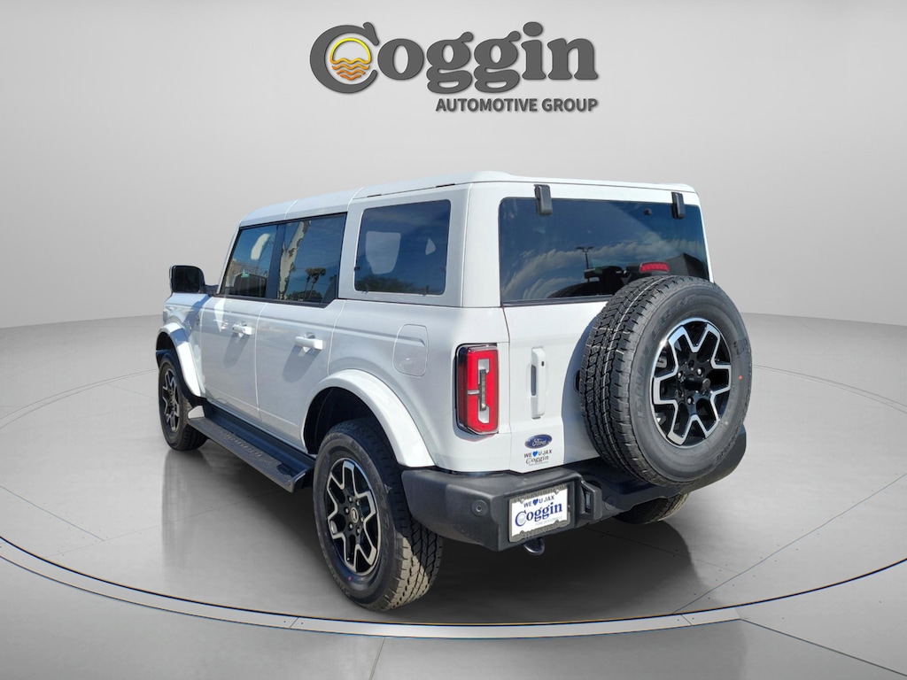 2025 Ford Bronco Outer Banks 4-Door 4x4 with Lux Package and V6 Power Designed for drivers who want refined comfort wrapped in unmistakable Bronco style, this new 2025 Ford Bronco Outer Banks 4-Door 4x4 blends confident performance, upscale features, and open-air versatility. Finished in Oxford White with a premium Smoked Truffle interior, this Bronco is equally at home cruising coastal highways, handling daily drives, or heading off the pavement for weekend adventures with confidence and control. 2.7L EcoBoost V6 engine paired with a 10-speed automatic transmission Advanced 4x4 system with Terrain Management System and G.O.A.T. Modes Outer Banks Series with Equipment Group 314A Lux Package with premium technology and comfort upgrades 360-degree camera for enhanced visibility on and off the road Adaptive cruise control with stop-and-go functionality 12-inch LCD center touchscreen with SYNC 4 12-speaker sound system with SiriusXM 360L Leather-trimmed and vinyl seating surfaces in Smoked Truffle Dual-zone automatic climate control Power 10-way driver seat and 8-way power front passenger seat 18-inch machined black-painted aluminum wheels with 32-inch all-terrain tires Painted hard top with sound-deadening headliner Front and rear tow hooks and tool kit for door and roof removal At Coggin Ford Jacksonville, we are committed to a transparent, professional, and guest-focused buying experience. Our knowledgeable team provides clear pricing, a streamlined process, and attentive support designed to respect your time and build long-term confidence from your first visit through ownership. This new 2025 Ford Bronco Outer Banks 4-Door 4x4 is available now at Coggin Ford Jacksonville and is an excellent choice for drivers seeking a premium Bronco with powerful V6 performance and advanced technology. Ideal for buyers looking for a new Ford Bronco Outer Banks in the Jacksonville area with everyday comfort and authentic capability. Proudly serving Jacksonville, Saint Augustine, Northeast Florida, Daytona, Tampa, Southern Georgia, Kingsland, and Starke, this Bronco is ready for daily driving, coastal cruising, and wherever the next adventure leads..