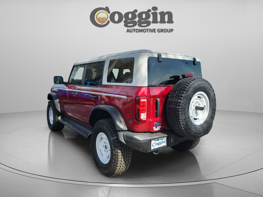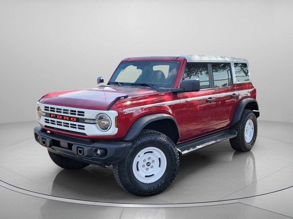 The **2025 Ford Bronco Heritage 4-Door 4x4** delivers classic Bronco character paired with modern off-road capability and everyday comfort, creating an SUV thats as fun to drive as it is capable. Finished in eye-catching **Ruby Red Metallic Tinted Clearcoat** and highlighted by distinctive Heritage styling cues, this Bronco stands out with a bold retro look backed by serious performance. Power comes from a robust **2.7L EcoBoost V6 engine** paired with a **10-speed automatic transmission**, delivering strong torque, smooth acceleration, and confident performance on pavement and off the beaten path. Equipped with **Advanced 4x4**, **G.O.A.T. Modes (Goes Over Any Type of Terrain)**, and the **Sasquatch Package with 35-inch tires**, this Bronco is built to tackle sand, trails, and rugged terrain with ease while still remaining comfortable for daily driving. Inside, the Heritage cabin blends vintage-inspired design with modern functionality, featuring **Navy and Onyx plaid cloth seating**, a **digital instrument cluster**, and a large **12-inch center touchscreen** powered by **SYNC 4**. **Dual-zone automatic climate control**, **smart USB charging ports**, and intuitive controls keep the interior comfortable and connected, whether youre running errands or heading out on an adventure. Thoughtful touches like the **leather-wrapped steering wheel**, **carpeted flooring**, and spacious rear seating add to its everyday usability. Built for open-air freedom, this Bronco includes a **white-painted hard top**, **sound-deadening headliner**, and a **tool kit for easy door and roof removal**, letting you quickly transform your drive when the weather is right. Safety and driver-assist features such as **pre-collision assist with automatic emergency braking**, **hill start assist**, **AdvanceTrac with Roll Stability Control**, and a **rear view camera** provide added confidence both on-road and off. Available in **Jacksonville, FL**, and proudly serving **Duval County, Clay County, St. Johns County, Ponte Vedra, Ponte Vedra Beach, Daytona, Daytona Beach, Orange Park, St. Augustine, Fernandina Beach, and South Georgia communities**.