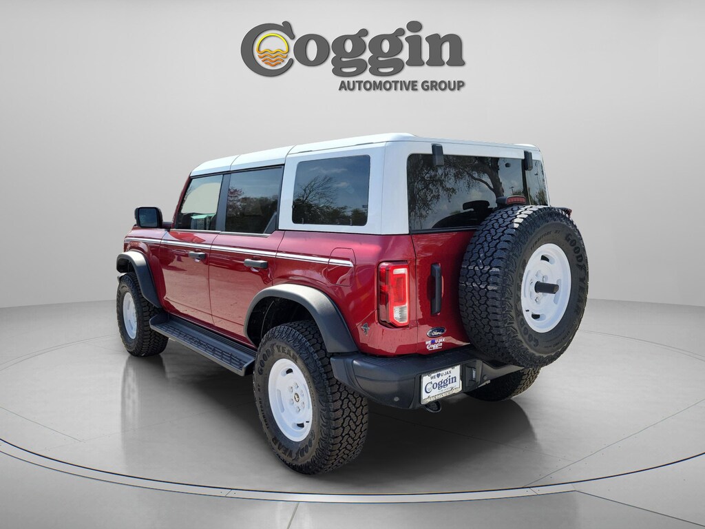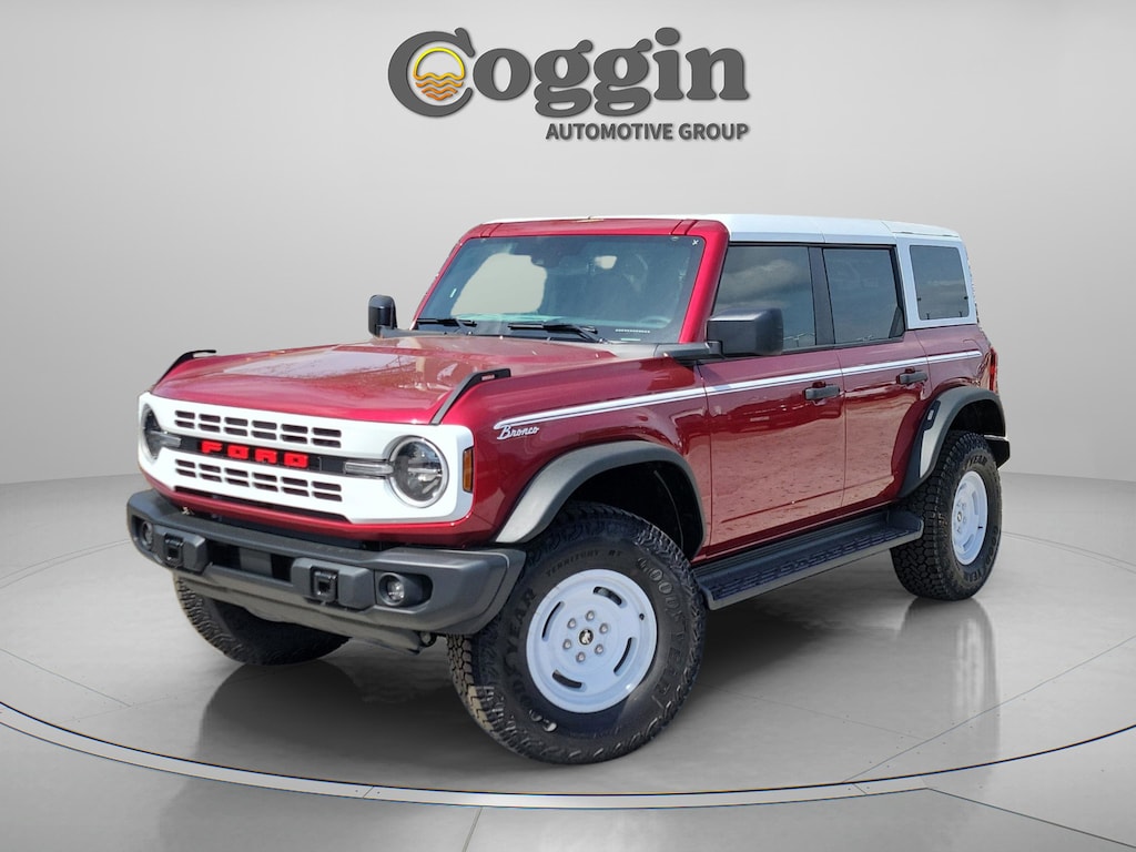 2025 Ford Bronco Heritage 4-Door 4x4 Classic Style with Serious Off-Road Capability Built for drivers who appreciate vintage Bronco design paired with modern performance, this 2025 Ford Bronco Heritage 4-Door 4x4 delivers unmistakable retro character with the power and technology to back it up. From its iconic color combination to its trail-ready hardware, this Bronco is designed for those who want something truly distinctive without giving up capability or everyday usability. Powered by a 2.7L EcoBoost V6 engine paired with a 10-speed automatic transmission, this Bronco delivers strong acceleration and confident performance on-road and off. Advanced 4x4 capability with G.O.A.T. Modes allows it to adapt seamlessly to sand, mud, trails, and pavement, making it equally at home cruising the coast or heading deep into adventure territory. This Heritage model is equipped with Equipment Group 662A and finished in striking Ruby Red Metallic Tinted Clearcoat with a white-painted hard top for authentic heritage styling. Key features include 17-inch Oxford White painted aluminum wheels wrapped in LT315/70R17 rugged terrain tires, a sound-deadening headliner, powder-coated steel front and rear bumpers, and classic white grille with red Ford lettering. Inside, the cabin features unique Navy and Onyx plaid cloth seating, dual-zone automatic climate control, a digital instrument cluster, leather-wrapped steering wheel and gear knob, smart charging USB ports, push-button start, and a large 12-inch SYNC 4 touchscreen with SiriusXM 360L. Additional highlights include remote start, FordPass Connect, Pre-Collision Assist with Automatic Emergency Braking, AdvanceTrac with Roll Stability Control, and a full suite of modern safety technologies. At Coggin Ford Jacksonville, were committed to a transparent, professional, and guest-focused purchase experience. Our knowledgeable team provides clear communication, straightforward pricing, and a streamlined buying process designed to make your new vehicle purchase simple and stress-free. This 2025 Ford Bronco Heritage 4-Door 4x4 is an exceptional option for drivers searching for a new Ford Bronco in Jacksonville, Florida, offering classic heritage styling, powerful EcoBoost performance, and modern technology. Its a standout choice for buyers looking for a Bronco Heritage near Jacksonville that blends nostalgia with real-world capability. Proudly serving Jacksonville, Saint Augustine, Northeast Florida, Daytona, Tampa, Southern Georgia, Kingsland, and Starke, this Bronco Heritage is ready to turn heads and tackle whatever adventure comes next..