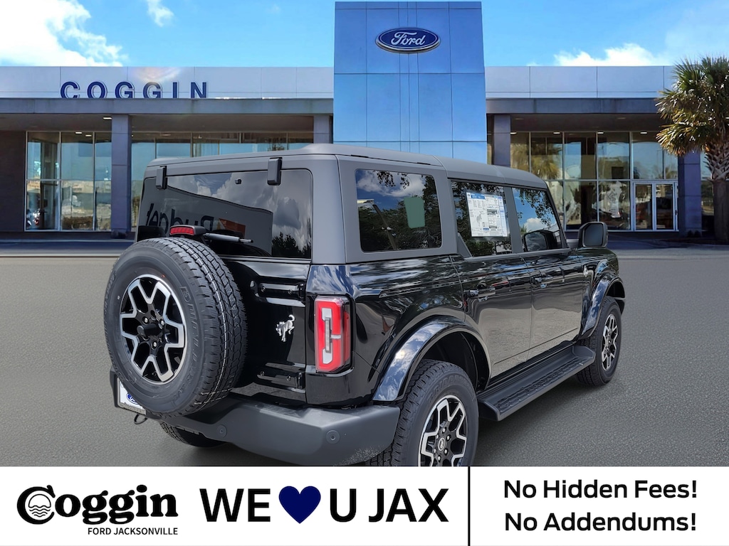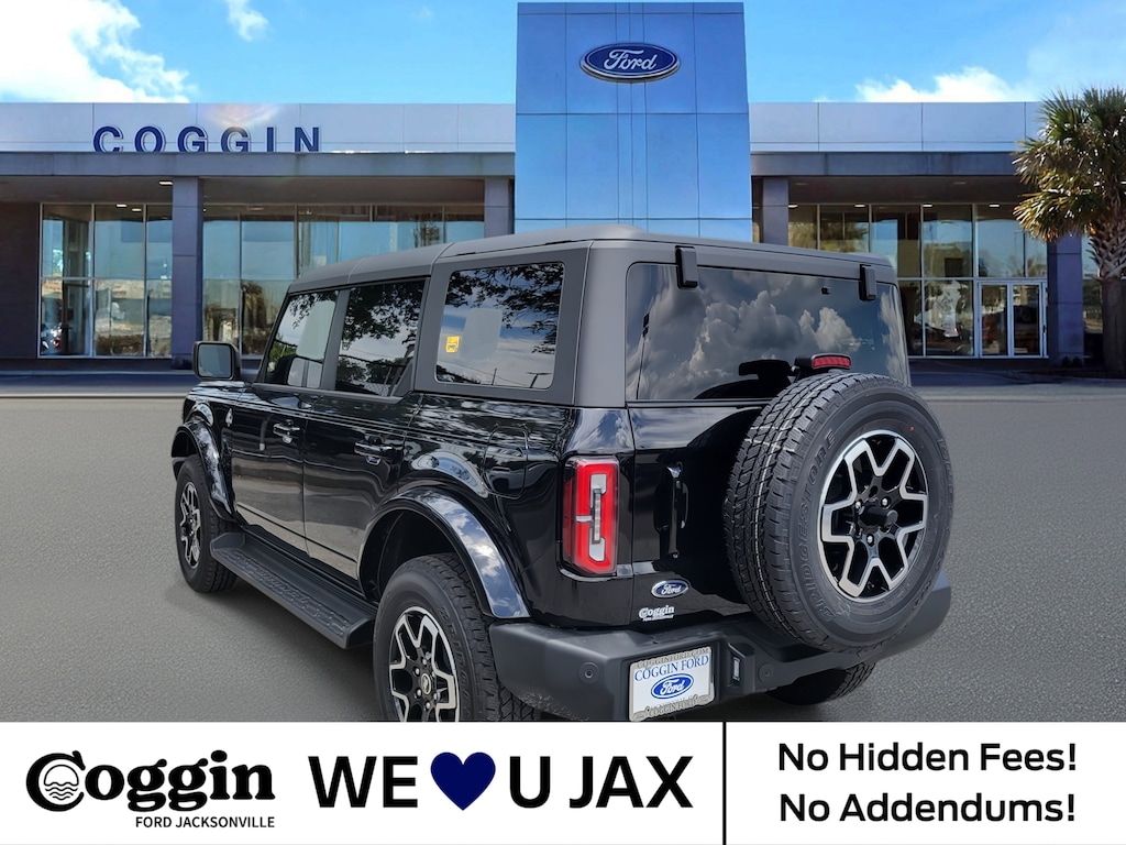 2025 Ford Bronco Outer Banks 4-Door 4x4 Shadow Black Sasquatch Package This 2025 Ford Bronco Outer Banks is built for Jacksonville drivers who demand both comfort and capability. Whether youre navigating daily commutes, exploring the beaches of Ponte Vedra, or heading off-road into Southern Georgia, this Bronco delivers the power, technology, and freedom to go anywhere. Key Highlights Sasquatch Package with 35 All-Terrain Tires & 17 Black Beadlock Alloy Wheels Advanced 4x4 with G.O.A.T. Modes for any terrain 2.7L EcoBoost V6 with 10-Speed Automatic Transmission 360-Degree Camera for full visibility Hard Top, Molded-in-Color with removable panels Adaptive Cruise Control & Ford Co-Pilot360 safety suite 12-inch Touchscreen with SYNC 4, Apple CarPlay & Android Auto Premium Lthr-Trim/Vinyl Black Seats & Dual-Zone Climate Control Front & Rear Locking Differentials for true off-road performance Sound-Deadening Headliner for quieter highway driving Why Buy from Coggin Ford Jacksonville At Coggin Ford Jacksonville, we are proud to be one of Northeast Floridas most trusted Ford dealerships. Local drivers from Jacksonville, St. Augustine, Daytona, Green Cove Springs, St. Johns, Ponte Vedra, and Southern Georgia choose us for: Guest-Centric Service Transparent, Upfront Pricing Trusted Local Team Our Promise: We Love You Jax Looking for a new Ford Bronco in Jacksonville FL? This 2025 Outer Banks 4x4 is available now at Coggin Ford Jacksonville. Visit us today and drive home the SUV thats as adventurous as you are..