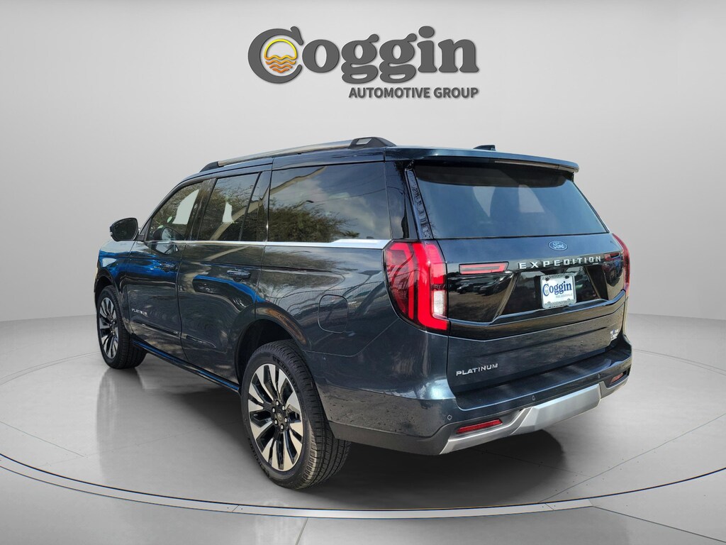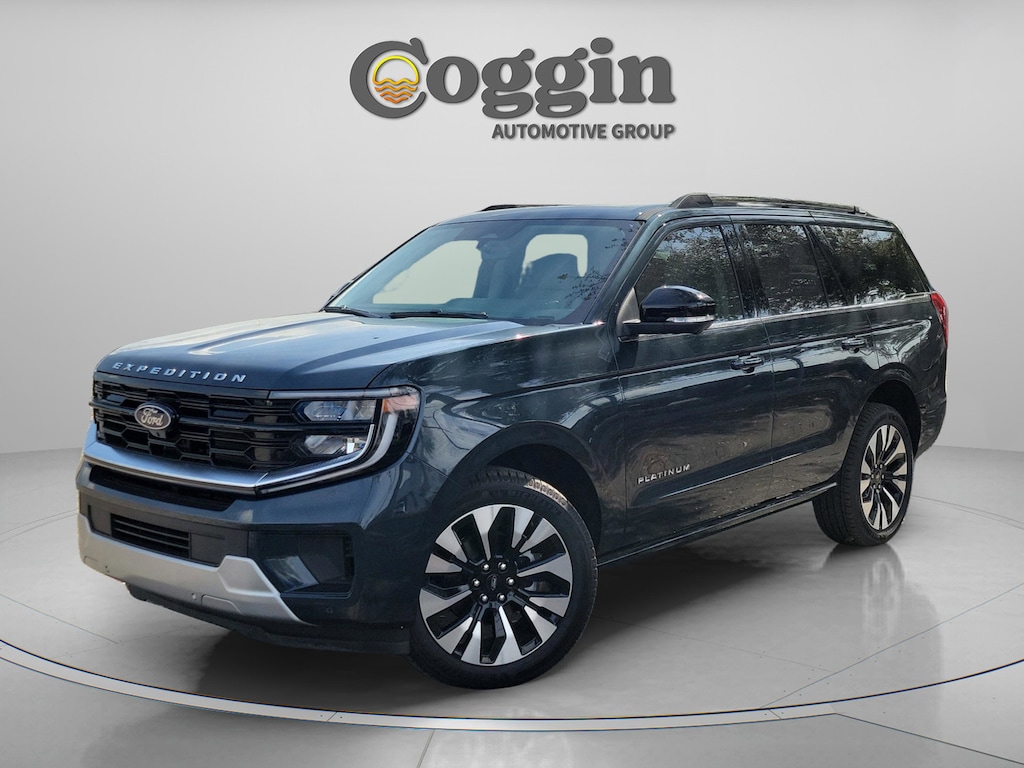 Commanding luxury meets rugged capability in this 2025 Ford Expedition Platinum 4 4 in Stone Blue Metallic. Powered by the 3.5L High-Output EcoBoost V6 and paired with a 10-speed automatic transmission, this full-size SUV delivers exceptional power, refinement, and advanced technology for the modern driver. Equipped with the Platinum Ultimate Package, Ford Co-Pilot360 Active 2.0, and BlueCruise hands-free driving, this Expedition takes comfort and confidence to new heights. Inside, Salt Crystal Gray leather-trimmed seats, a 24-inch panoramic display, and a panoramic Vista Roof make every drive first-classwhether its a family road trip or a weekend adventure. 3.5L High-Output EcoBoost V6 Engine / 10-Speed Automatic Transmission Intelligent 4WD System with Two-Speed Transfer Case Platinum Ultimate Package Multi-Contour Front Seats, 22 Ebony Bright Machined Aluminum Wheels, Premium Audio, and Advanced Tech Upgrades Ford Co-Pilot360 Active 2.0 with BlueCruise (1-Year Plan Included) 24 Panoramic Display with 13.2 Center Touchscreen Heavy-Duty Trailer Tow Package with Trailer Sway Control Panoramic Vista Roof with Power Shade Tri-Zone Automatic Climate Control and Heated/Ventilated Front Seats Heated 2nd-Row Seats and PowerFold 3rd Row Ambient Lighting and Wireless Charging Pad 360-Degree Zone Lighting and Rain-Sensing Wipers Advanced Security Pack, SOS Post-Crash Alert System, and Individual Tire Pressure Monitoring Class IV Trailer Hitch Receiver and Power Adjustable Pedals with Memory Why Buy From Coggin Ford Jacksonville: transparent pricing, multi-point inspections, complimentary CarFax reports, easy financing, and a guest-first buying experience built on long-term trust. 2025 Ford Expedition Platinum 4 4, Stone Blue Metallic, 3.5L High-Output EcoBoost, 10-Speed Auto, Platinum Ultimate Package, BlueCruise, Co-Pilot360 Active 2.0, Panoramic Vista Roof, 24 Panoramic Display, 22 Ebony Bright Wheels, Luxury Full-Size SUV, Premium Family Vehicle, 4WD.