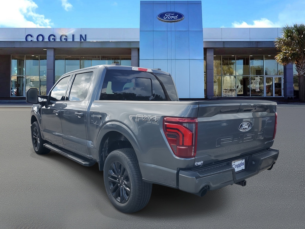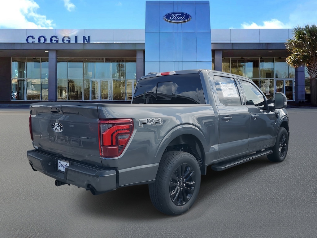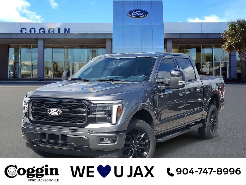 2025 Ford F-150 Lariat 4x4 SuperCrew Carbonized Gray Metallic, 3.5L EcoBoost V6, bold design and premium tech built for Florida lifestyles. This F-150 Lariat Black Appearance Package blends sophistication with power, offering best-in-class capability wrapped in a head-turning dark finish. Whether youre tackling job sites or cruising through Jacksonville Beach, its engineered for strength, style, and confidence. Lariat Series (Equipment Group 501A) 3.5L EcoBoost V6 engine with 10-speed automatic transmission 4x4 drivetrain with electronic locking rear axle (3.55 Max Tow) Carbonized Gray Metallic with Black ActiveX seating surfaces Lariat Black Appearance Package: 20 gloss black-painted aluminum wheels, blacked-out badging, mirror caps, and grille FX4 Off-Road Package with skid plates, off-road shocks, hill descent control Tow/Haul Package with integrated trailer brake controller and smart tow technology BlueCruise hands-free driving (1-year plan included) SYNC 4 with 12 touchscreen + 12 productivity digital cluster Heated and ventilated front seats; 10-way power driver and passenger with lumbar Heated leather-wrapped steering wheel and dual-zone automatic climate control Adaptive cruise control and 360-degree camera system Remote start, power tailgate release, and FordPass Connect 5G Wi-Fi LED projector headlamps with dynamic bending, LED taillamps, and mirror spotlights 36-gallon extended-range fuel tank; 7,100# GVWR package AdvanceTrac with RSC, BLIS with Cross-Traffic Alert, Lane-Keeping System, Reverse Brake Assist, and Post-Collision Braking Warranties: 3yr/36k bumper-to-bumper, 5yr/60k powertrain & roadside assistance Why buy your F-150 Lariat from Coggin Ford Jacksonville: exceptional service, transparent pricing, and a team committed to helping you drive home your ideal Ford truck. Proudly serving Jacksonville, Saint Augustine, Daytona, Tampa, Southern Georgia, Kingsland, and Starke. Jacksonville Ford F-150 Lariat 4x4, Carbonized Gray F-150, 3.5L EcoBoost truck, Lariat Black Appearance Package, FX4 Off-Road Package, BlueCruise hands-free driving, 20-inch black wheels, SYNC 4 12-inch touchscreen, heated and ventilated seats, 360-degree camera, Florida luxury trucks, St. Augustine Ford, Daytona F-150 dealer, Tampa Ford trucks, Kingsland GA Ford, Starke FL dealer., 4WD.