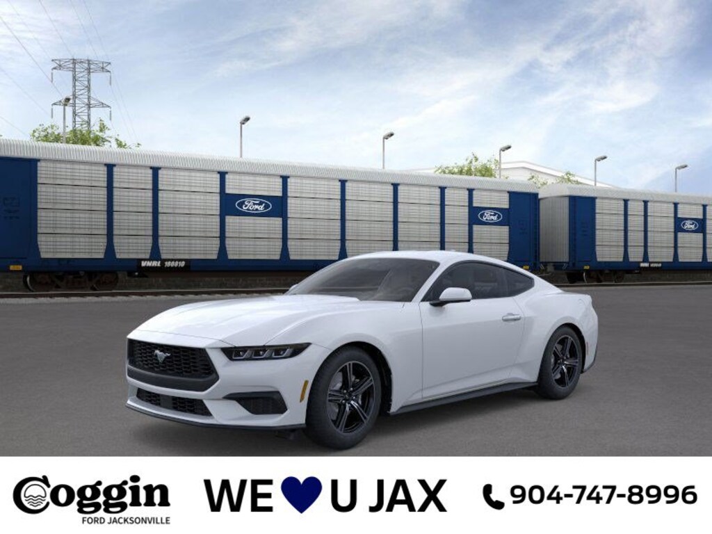2025 Ford Mustang EcoBoost Coupe Oxford White, Turbocharged Style with Everyday Thrill The 2025 Ford Mustang EcoBoost Coupe in Oxford White brings modern performance and iconic muscle car heritage together in one sleek, factory-fresh package. Powered by a 2.3L EcoBoost turbocharged engine and paired with a 10-speed automatic transmission, this Mustang delivers exhilarating performance with refined efficiency. Whether youre carving Jacksonville streets, cruising through St. Augustine, or heading up to Southern Georgia, this coupe delivers power, precision, and unmistakable Mustang style. **Key Features Youll Love** * 2.3L EcoBoost turbocharged engine with 10-speed automatic transmission * 3.15 limited-slip rear axle for confident performance * 18 Machined-face aluminum wheels with ebony-painted pockets and all-season tires * Spoiler delete for a clean, performance-focused design * 12.4 digital instrument cluster with Track Apps performance data * 13.2 center LCD touchscreen with SYNC 4 and enhanced voice recognition * Ford Co-Pilot360 with Rear View Camera, Rear Parking Sensors, and Lane-Keeping System * Rain-sensing wipers, LED headlamps with signature lighting, and sequential LED taillamps * Dual-zone electronic automatic climate control for year-round comfort * Intelligent Access with push-button start and FordPass Connect Wi-Fi capability * Flat-bottom vinyl steering wheel, split-fold rear seat, and center console with armrest * Safety features: AdvanceTrac ESC, multiple airbags including driver/passenger knee airbags, LATCH child safety system, SecuriLock anti-theft, SOS Post-Crash Alert System * Factory-backed coverage: 3yr/36k bumper-to-bumper, 5yr/60k powertrain, 5yr/60k roadside assistance **Why Buy Your New Ford from Coggin Ford Jacksonville** At Coggin Ford Jacksonville, we provide more than just new carswe deliver a seamless, transparent experience designed for you. Thats why Mustang enthusiasts from Jacksonville, Daytona, Kingsland, and Tampa continue to choose us over Courtesy Toyota, Bozard Ford, and Duval Ford. With us, youll enjoy: * Guest-Centric Approach with personalized support at every step * Transparent, Upfront Pricing with no hidden dealer add-ons * Priority access to fresh Ford inventory and exclusive factory orders * Complimentary new-vehicle orientation to help you unlock every Mustang feature * Trusted local service and warranty support across Northeast Florida and Southern Georgia.