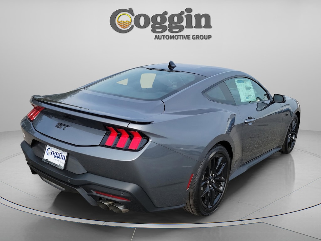 2025 Ford Mustang GT Coupe Carbonized Gray, V8 Power Meets Iconic Style The 2025 Ford Mustang GT Coupe in Carbonized Gray Metallic brings legendary performance and unmistakable design together in a factory-fresh package. With its 5.0L Ti-VCT V8 engine, Nite Pony Package, and advanced technology, this Mustang is built to thrill on Jacksonville roads while offering everyday practicality. Whether cruising the coast to St. Augustine or taking on Southern Georgia highways, this coupe delivers pure Mustang excitement backed by modern confidence. **Key Features Youll Love** * 5.0L Ti-VCT V8 engine paired with 10-speed automatic transmission * 3.55 ratio limited-slip rear axle for enhanced traction * Nite Pony Package with 19 ebony black-painted aluminum wheels and black-painted roof * Active Valve Performance Exhaust for customizable sound and performance * 12.4 digital instrument cluster and 13.2 center touchscreen with SYNC 4 * SiriusXM with 360L capability and FordPass Connect 4G Wi-Fi hotspot * Ford Co-Pilot360 driver-assist features with Rear Parking Sensors, Lane-Keeping System, and Rear View Camera * Track Apps with selectable drive modes for performance customization * Rain-sensing wipers, LED headlamps with signature lighting, and sequential LED taillamps * Interior highlights: Black Onyx cloth/vinyl seating, flat-bottom leather steering wheel, dual-zone electronic climate control, split-fold rear seat * Smart-charging USB ports, Intelligent Access with push-button start * Safety features: AdvanceTrac ESC, multiple airbags including knee airbags, LATCH child safety system, SecuriLock anti-theft, SOS Post-Crash Alert System * Factory warranty coverage: 3yr/36k bumper-to-bumper, 5yr/60k powertrain, 5yr/60k roadside assistance **Why Buy Your New Ford from Coggin Ford Jacksonville** At Coggin Ford Jacksonville, we provide a transparent, guest-focused buying experience that ensures confidence long after the sale. Thats why Mustang drivers across Jacksonville, Daytona, Kingsland, and Tampa continue to choose us over Courtesy Toyota, Bozard Ford, and Duval Ford. With us, youll enjoy: * Guest-Centric Approach with service built around your needs * Transparent, Upfront Pricing with no hidden add-ons * Priority access to new Ford inventory and exclusive factory orders * Complimentary new-vehicle orientation so you can maximize every Mustang feature * Trusted local service and warranty support throughout Northeast Florida and Southern Georgia.