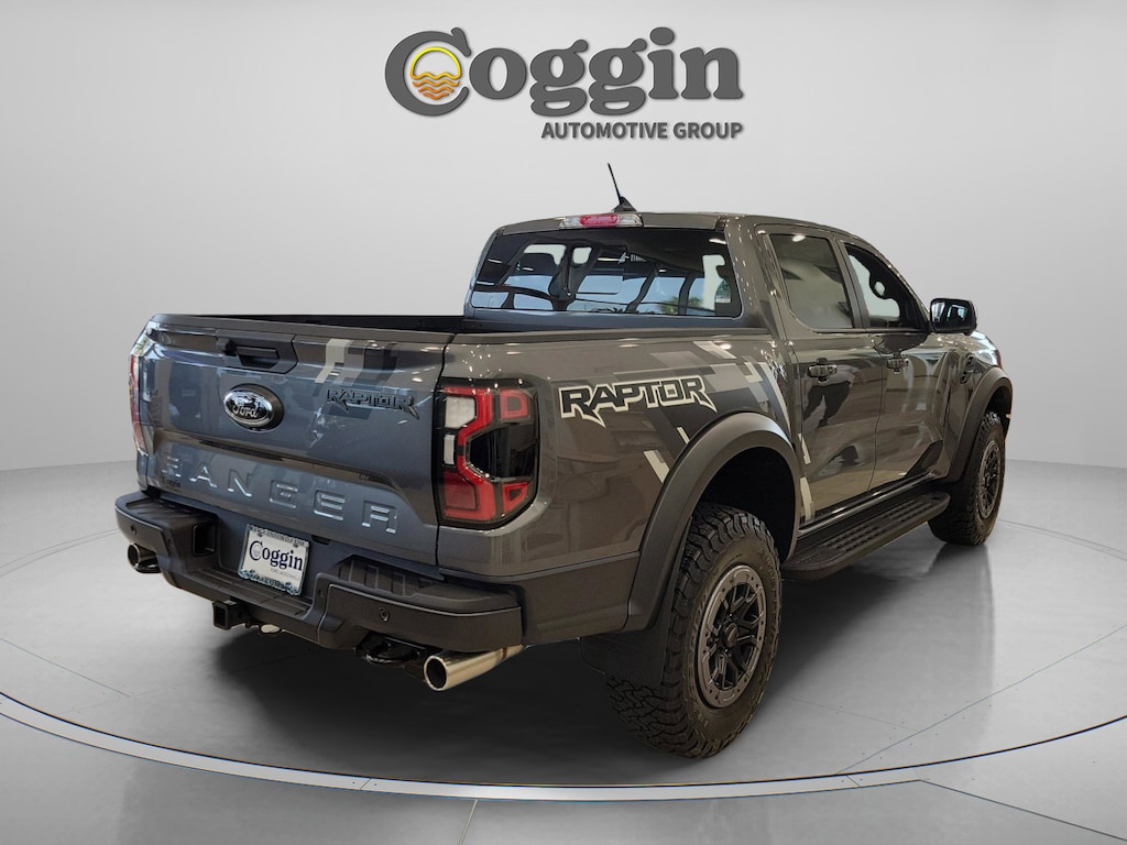 Built for extreme performance and off-road dominance, this 2025 Ford Ranger Raptor SuperCrew 4 4 in Carbonized Gray Metallic is engineered to take on the toughest terrain with confidence. Powered by the 3.0L EcoBoost engine paired with a 10-speed automatic transmission, it delivers explosive power and precision handling backed by Ford Performance DNA. From FOX Live Valve shocks to a fully boxed steel frame and Watts-link rear suspension, every component is designed for high-speed control and rugged durability. Inside, the Raptor-exclusive leather-trimmed seats, digital instrument cluster, and 12 SYNC 4A touchscreen combine track-inspired function with everyday comfort. 3.0L EcoBoost V6 Engine with 10-Speed Automatic Transmission 4 4 Drivetrain with Terrain Management System and Off-Road Drive Modes FOX Live Valve Shocks and Watts-Link Rear Suspension 17 Beadlock-Capable Wheels with LT285/70R17 All-Terrain Tires Raptor Graphic Package and Tough Bed Spray-In Bedliner LED Projector Headlamps, LED Taillamps, and Daytime Running Lamps Power Sliding Rear Window and Remote Tailgate Lock Heated Raptor-Exclusive Power Front Seats with Driver Memory Heated Steering Wheel, Dual-Zone Automatic Climate Control, Ambient Lighting SYNC 4A with 12 Touchscreen and SiriusXM with 360L BLIS with Cross-Traffic Alert, Lane-Keeping System, and Pre-Collision Assist with AEB Intelligent Access with Push-Button Start and Remote Start System Upfitter Switches for Custom Accessory Integration Why Buy From Coggin Ford Jacksonville: transparent pricing, multi-point inspections, complimentary CarFax reports, simple financing options, and a guest-first experience built on trust and long-term satisfaction. 2025 Ford Ranger Raptor SuperCrew 4 4, Carbonized Gray Metallic, 3.0L EcoBoost, 10-Speed Auto, FOX Live Valve Shocks, Beadlock-Capable Wheels, Tough Bed Liner, SYNC 4A 12 Screen, Raptor Graphic Package, Lane-Keeping System, Co-Pilot Safety, Off-Road Pickup, High-Performance Truck, 4WD.