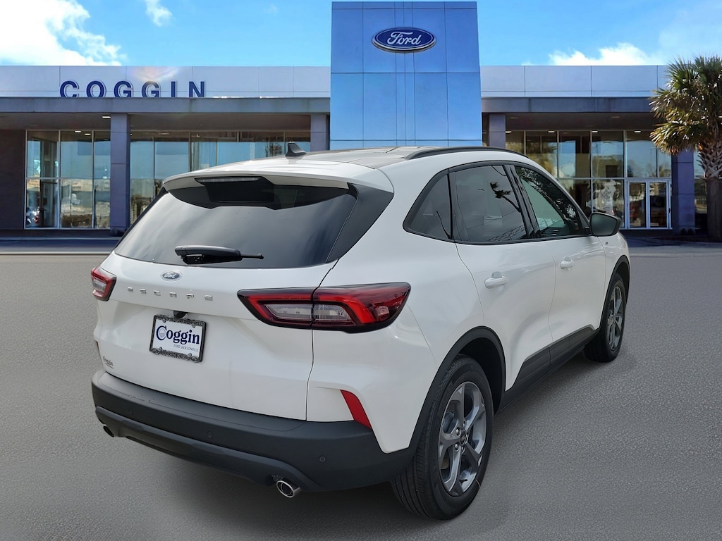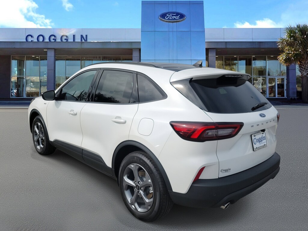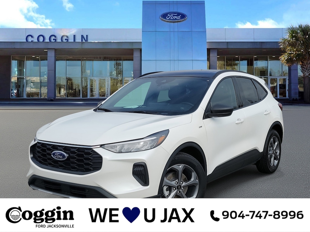 2026 ESCAPE ST-LINE FWD STAR WHITE METALLIC TRI-COAT, PANORAMIC ROOF, SPORTY STYLE AND SMART TECH Eye-catching, efficient, and fun to drive this Star White Metallic 2026 Ford Escape ST-Line FWD is the perfect blend of sporty design and modern versatility. Powered by a 1.5L EcoBoost engine with Auto Start-Stop and an 8-speed automatic, it delivers the right mix of performance and fuel efficiency for Floridas highways and coastal backroads. Inside, premium finishes and smart tech make every drive connected and comfortable. ST-Line Series (Equipment Group 300A) with SYNC 4, 13.2 Touchscreen, and FordPass Connect 1.5L EcoBoost Engine paired with 8-Speed Automatic Transmission 18 Rock Metallic Painted Aluminum Wheels with 225/60R18 All-Season Tires Tech Package #1 with Adaptive Cruise Control, Lane Centering, Rear Parking Sensors, Evasive Steering Assist, and Connected Navigation (1-Year Plan) Panoramic Vista Roof for open-sky views and an elevated driving experience Sport-Inspired Ebony Cloth/Vinyl Interior with Red Stitching, Flat-Bottom Steering Wheel, and Dual-Zone Climate Control Black Mesh Grille, LED Headlamps, ST-Line Rear Spoiler, and Roof-Rack Side Rails for bold styling Smart Convenience Features: Rotary Gear Shift Dial, Intelligent Access with Push-Button Start, and USB-A/C Power Points Safety & Security: BLIS with Cross-Traffic Alert, AdvanceTrac with RSC, Safety Canopy System, SOS Post-Crash Alert System, and Tire Pressure Monitoring WHY BUY FROM COGGIN FORD JACKSONVILLE Coggin Ford Jacksonville delivers an unmatched guest-first experience, combining transparent pricing with Ford-certified expertise. From your first visit to long-term service, our team is committed to earning your trust every mile. Proudly serving Jacksonville, Saint Augustine, Northeast Florida, Daytona, Tampa, Southern Georgia, Kingsland, and Starkethis 2026 Ford Escape ST-Line FWD is where dynamic design meets everyday efficiency..