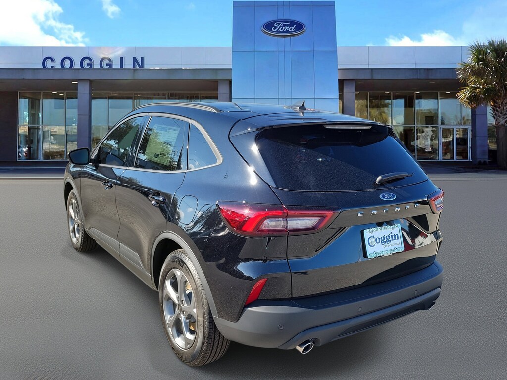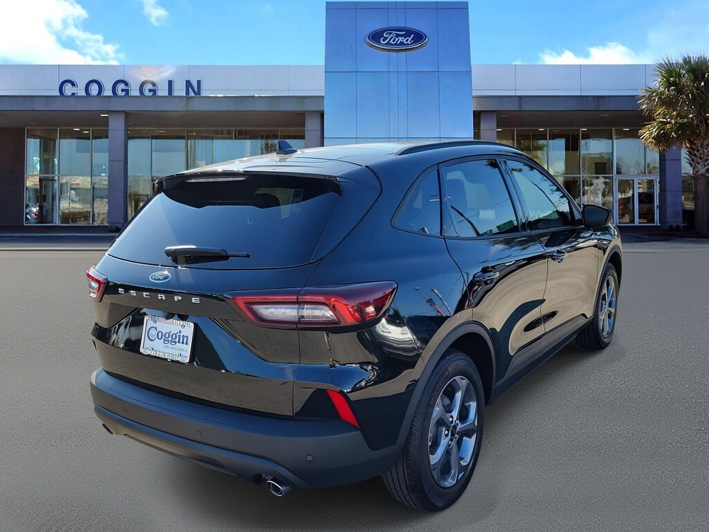 2026 ESCAPE ST-LINE FWD AGATE BLACK METALLIC, PANORAMIC ROOF, SPORTY STYLE WITH SMART TECHNOLOGY Sleek, spirited, and efficient this Agate Black Metallic 2026 Ford Escape ST-Line FWD brings athletic design and everyday versatility together. Its 1.5L EcoBoost engine with Auto Start-Stop delivers excellent performance and fuel economy, while bold ST-Line accents and advanced tech features make every Florida drive feel elevated and connected. ST-Line Series (Equipment Group 300A) with 13.2 Touchscreen, SYNC 4, and FordPass Connect 1.5L EcoBoost Engine with 8-Speed Automatic Transmission 18 Rock Metallic Painted Aluminum Wheels with 225/60R18 All-Season Tires Tech Package #1 with Adaptive Cruise Control, Lane Centering, Rear Parking Sensors, Evasive Steering Assist, and Connected Navigation (1-Year Plan) Cold Weather Package with Heated Front Seats, Heated Steering Wheel, Heated Power Mirrors, and Remote Start Panoramic Vista Roof for open-air driving and an elevated cabin feel Sport-Inspired Ebony Cloth/Vinyl Interior with Red Stitching and Flat-Bottom Steering Wheel Dual-Zone Automatic Climate Control, Rotary Gear Shift Dial, and Rear-Seat Center Armrest Power Liftgate, LED Headlamps, Roof-Rack Side Rails, and ST-Line Badging for a sporty exterior finish Safety & Security: AdvanceTrac with RSC, Safety Canopy System, BLIS with Cross-Traffic Alert, Tire Pressure Monitoring, and SOS Post-Crash Alert System WHY BUY FROM COGGIN FORD JACKSONVILLE At Coggin Ford Jacksonville, our commitment to transparency, guest satisfaction, and Ford-certified service sets us apart. From trade-in to test drive, our expert team ensures a seamless and enjoyable buying experience. Proudly serving Jacksonville, Saint Augustine, Northeast Florida, Daytona, Tampa, Southern Georgia, Kingsland, and Starkethis 2026 Ford Escape ST-Line FWD delivers sporty looks, smart technology, and everyday efficiency in one sleek SUV..
