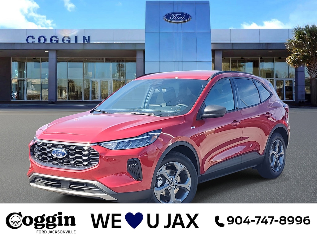 2026 ESCAPE ST-LINE FWD RAPID RED METALLIC TINTED CLEARCOAT, 1.5L ECOBOOST, SPORTY STYLE AND EFFICIENCY IN ONE Stand out on Jacksonville streets with this Rapid Red 2026 Ford Escape ST-Line, blending athletic design with everyday versatility. The turbocharged 1.5L EcoBoost engine with Auto Start-Stop delivers strong, efficient performance, while ST-Line details and refined tech make it both fun to drive and easy to live with. ST-Line Series (Equipment Group 300A) with black mesh grille, ST-Line badging, unique skid plates, and flat-bottom steering wheel with red stitching 1.5L EcoBoost engine with Auto Start-Stop and 8-speed automatic transmission 18 Rock Metallic painted aluminum wheels with 225/60R18 all-season tires Cold Weather Package: heated front seats, heated steering wheel, power heated mirrors, and remote start system Dual-zone automatic climate control with rear-seat vents and red interior stitching accents LED headlamps and taillamps with courtesy delay function and privacy glass Rotary gear shift dial and electronic parking brake for a sleek, modern cabin layout BLIS with Cross-Traffic Alert and AdvanceTrac with RSC for enhanced safety FordPass Connect with remote start and app-based vehicle control SiriusXM with 360L and 4G LTE modem connectivity Sport bucket front seats and rear-seat armrest with integrated cupholders Black roof-rail accents and body-color door handles complete the athletic stance Warranty coverage: 3yr/36k bumper-to-bumper, 5yr/60k powertrain, 5yr/60k roadside assistance At Coggin Ford Jacksonville, we make upgrading to a new Escape simple, transparent, and rewarding. Enjoy personalized service, local trade-in advantages, and convenient online or in-store buying options designed for Northeast Florida drivers who expect both value and performance. escape st-line for sale jacksonville 2026 ford escape rapid red escape st-line cold weather package escape st-line 1.5l ecoboost mpg escape st-line black mesh grille escape st-line suv northeast florida ford escape st-line st augustine escape st-line daytona fl escape st-line tampa escape st-line kingsland ga escape st-line starke fl.