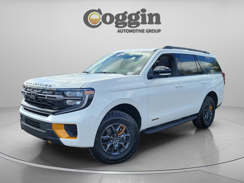 2026 Ford Expedition Tremor 4x4 with High-Output EcoBoost and Off-Road Capability Engineered for families and adventurers who demand serious capability without sacrificing comfort, this 2026 Ford Expedition Tremor 4x4 delivers powerful performance, advanced technology, and true off-road readiness in a full-size SUV. With rugged hardware and premium interior features, its built to handle everything from daily driving in Jacksonville to trail-ready exploration across the Southeast. Powered by a high-output 3.5L EcoBoost V6 paired with a 10-speed automatic transmission, this Expedition delivers impressive torque and confident acceleration. The Tremor off-road suspension, two-speed transfer case, and 3.73 electronic locking rear axle enhance traction and control when terrain gets challenging. Trail Turn Assist and Trail 1-Pedal Drive improve maneuverability on difficult trails, while the heavy-duty radiator and heavy-duty trailer tow system support demanding capability. Finished in Star White Metallic Tri-Coat with Black Onyx and Electric Spice leather-trimmed seating, this seven-passenger Expedition stands out with aggressive Tremor styling and functional upgrades. It rides on 18-inch dark carbonized gray aluminum wheels wrapped in all-terrain tires and features front tow hooks, skid plates, fixed running boards, roof rack side rails, off-road auxiliary lighting, and Fords innovative split gate with open-on-approach functionality. A panoramic Vista Roof enhances the cabin with expansive natural light. Inside, the cabin blends rugged utility with upscale comfort. Heated and ventilated front seats, heated second-row seats, memory driver seat, a heated leather-wrapped steering wheel, and tri-zone automatic climate control ensure every passenger travels in comfort. Technology highlights include a panoramic digital display paired with a large center touchscreen, premium B&O sound system, Ford Co-Pilot360 Active driver-assist technology, remote start through the Ford app, and Pro Power Onboard capability for powering gear on the go. At Coggin Ford Jacksonville, every new vehicle is offered with a transparent, professional, and guest-focused buying experience. Our knowledgeable team provides clear communication, straightforward pricing, and a streamlined purchase process designed to make your next SUV purchase simple and rewarding. This 2026 Ford Expedition Tremor 4x4 is a standout option for drivers searching for a new Ford Expedition in Jacksonville, Florida, offering high-output EcoBoost power, advanced off-road capability, and premium three-row comfort. Its an excellent choice for buyers looking for a new Expedition Tremor near Jacksonville that combines family versatility with serious adventure-ready performance. Proudly serving Jacksonville, Saint Augustine, Northeast Florida, Daytona, Tampa, Southern Georgia, Kingsland, and Starke, this Expedition Tremor is ready for road trips, trail exploration, and everything in between., 4WD.