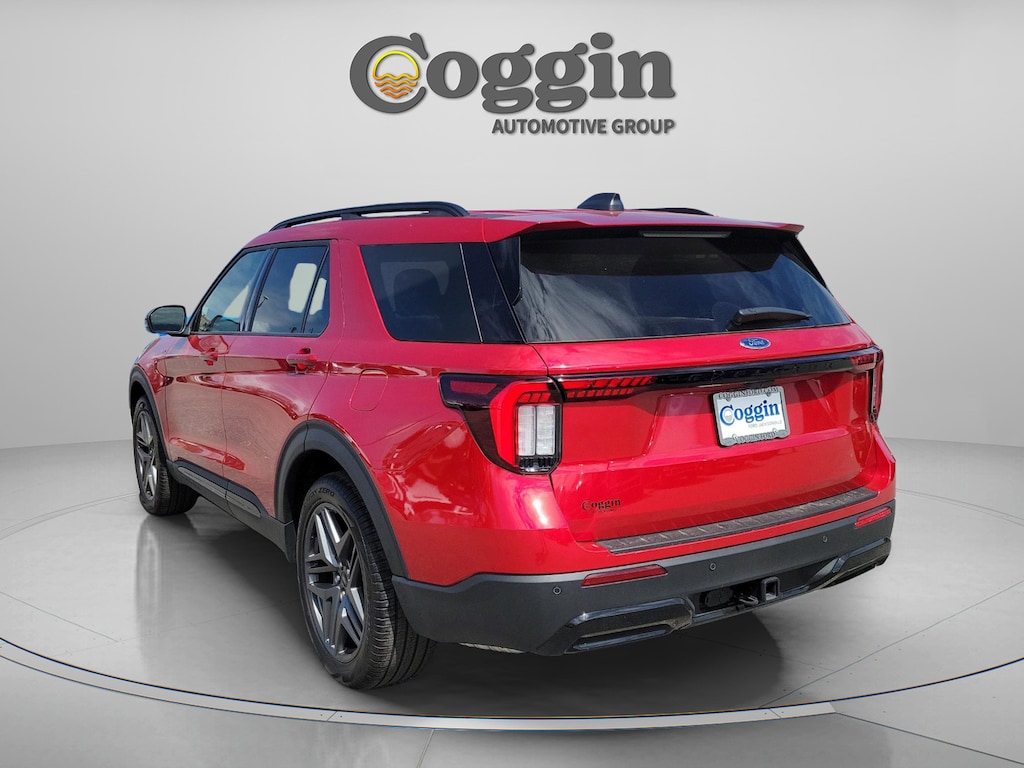 2026 Ford Explorer ST-Line RWD in Rapid Red Metallic Tinted Clearcoat Bold, athletic, and unmistakably modern, this 2026 Ford Explorer ST-Line RWD in Rapid Red Metallic Tinted Clearcoat is designed to turn heads across Jacksonville and beyond. Powered by a 2.3L EcoBoost I-4 engine paired with a responsive 10-speed automatic transmission, this rear-wheel-drive Explorer delivers confident performance, refined handling, and sport-inspired styling in a versatile three-row SUV. The ST-Line trim elevates the Explorers presence with unique ST-Line badging, black mesh grille insert, EXPLORER hood badging, LED headlamps and fog lamps, black roof-rail side rails, and a power liftgate. The ST-Line Street Pack enhances both appearance and performance with 21-inch aluminum wheels, P275/45R21 all-season tires, and performance brakes for a more commanding stance and confident road control. A Class III Trailer Tow Package with Trailer Sway Control adds capability for weekend adventures. 13.2-inch LCD touchscreen with Ford Digital Experience Google Maps and Google Play integration Wireless Apple CarPlay and Android Auto 12.3-inch digital instrument cluster 360-degree camera system B&O Sound System with 10 speakers Remote start system Premium leather-wrapped heated steering wheel Front-row heated seats Second-row heated seats 2nd-row captains chairs Premium Package with ambient lighting Auto-dimming rearview mirror 110V/150W AC power outlet Universal garage door opener Selectable drive modes 18-inch spare wheel and jack kit USB-C ports in all rows Inside, the Onyx interior with unique cloth inserts and red stitch accents creates a refined yet sporty atmosphere. Power driver and passenger seating, a rotary gear shift dial, intelligent access with push-button start, and thoughtfully designed storage ensure everyday comfort and convenience for both driver and passengers. Safety features include AdvanceTrac with RSC, Safety Canopy System, driver knee airbag, individual tire pressure monitoring system, LATCH child safety system, perimeter alarm, and SOS Post-Crash Alert System to help protect what matters most. At Coggin Ford Jacksonville, we are committed to delivering a transparent and guest-focused buying experience. Our professional team provides clear pricing, knowledgeable guidance, and a streamlined process designed around your needs. We proudly serve our community with integrity and long-term customer care. This 2026 Ford Explorer ST-Line RWD in Rapid Red Metallic Tinted Clearcoat is an outstanding choice for drivers searching for a new Ford Explorer in Jacksonville, Florida. With its 2.3L EcoBoost engine, ST-Line Street Pack, Premium Package, and advanced technology, it offers three-row versatility with bold performance-inspired styling. If youre looking for a new 2026 Explorer ST-Line near Jacksonville, this SUV delivers modern capability and standout design. Proudly serving Jacksonville, Saint Augustine, Northeast Florida, Daytona, Tampa, Southern Georgia, Kingsland, and Starke, this Explorer is ready to elevate your daily drive with confidence and style..