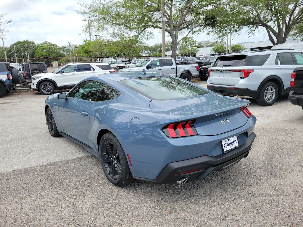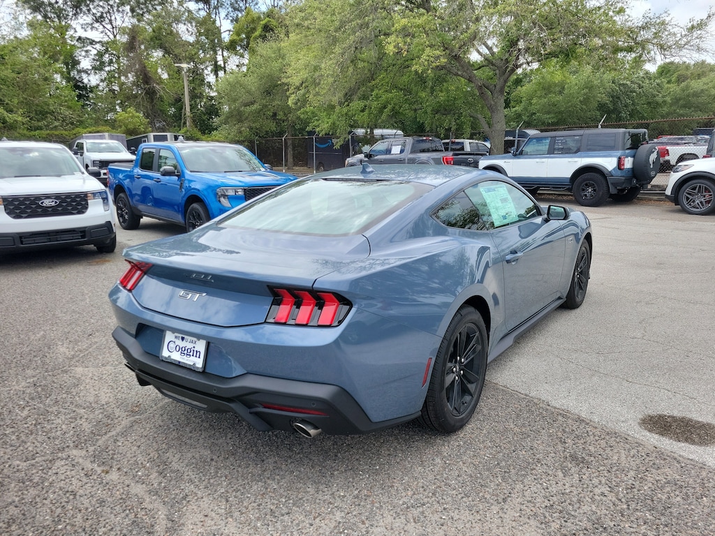 2026 Ford Mustang GT Coupe with 5.0L V8, Equipment Group 301A, and Digital Cockpit Built for pure performance and unmistakable presence, this new 2026 Ford Mustang GT Coupe delivers legendary V8 power, aggressive styling, and modern technology. Finished in Vapor Blue Metallic with a Black Onyx cloth and vinyl interior, this Mustang blends classic muscle with next-generation connectivity and driver-focused features. 5.0L Ti-VCT V8 engine delivering iconic Mustang performance 10-speed automatic transmission for smooth, responsive shifting Rear-wheel drive for true performance dynamics GT Coupe with Equipment Group 301A 3.15 limited-slip rear axle for enhanced traction 18-inch ebony black-painted aluminum wheels with performance tires 12.4-inch digital instrument cluster and 13.2-inch center touchscreen SYNC 4 with advanced connectivity and voice recognition Selectable drive modes and Track Apps performance features Dual-zone automatic climate control Intelligent Access with push-button start Ford Co-Pilot360 driver-assist technologies Rear parking sensors and rear view camera LED headlamps with signature lighting and sequential LED taillamps According to the window sticker, this Mustang achieves an estimated 19 MPG combined, reflecting its powerful V8 performance. Coggin Ford Jacksonville is committed to delivering a transparent, professional, and guest-focused buying experience. Our knowledgeable team provides clear pricing, a streamlined process, and attentive support designed to elevate your ownership experience. This new 2026 Ford Mustang GT Coupe is available now at Coggin Ford Jacksonville and is an exceptional choice for drivers seeking authentic V8 performance, modern technology, and iconic design. Ideal for buyers looking for a new Ford Mustang GT in the Jacksonville area. Proudly serving Jacksonville, Saint Augustine, Northeast Florida, Daytona, Tampa, Southern Georgia, Kingsland, and Starke, this Mustang is ready for daily driving, weekend cruising, and performance driving excitement..